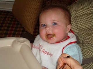 My sweet Kensington eating her first veggie…peas! And my sweet Smith eating his too 🙂