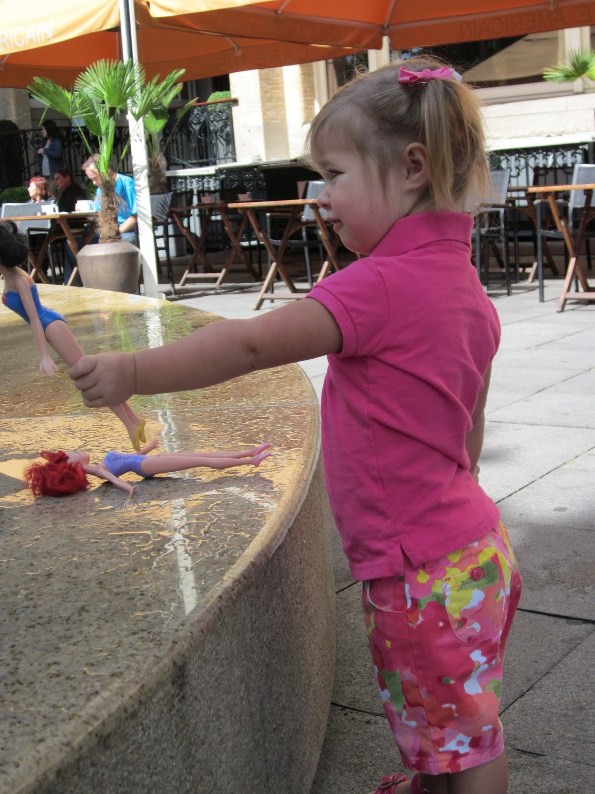 We stopped so Kensington, Snow White and Ariel could play in the fountain