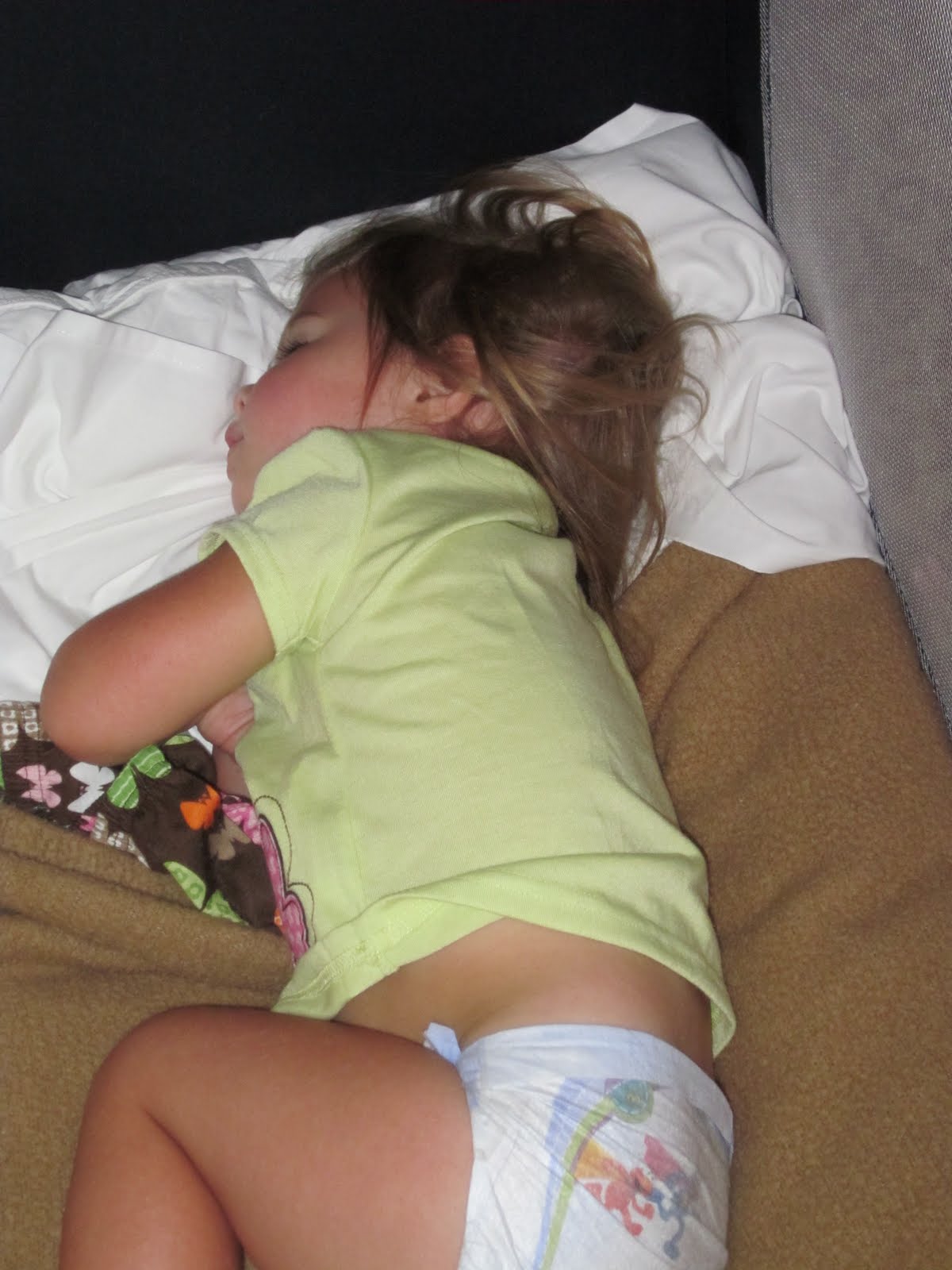 At some point during the night, she took her pj pants off and decided to cuddle with them.