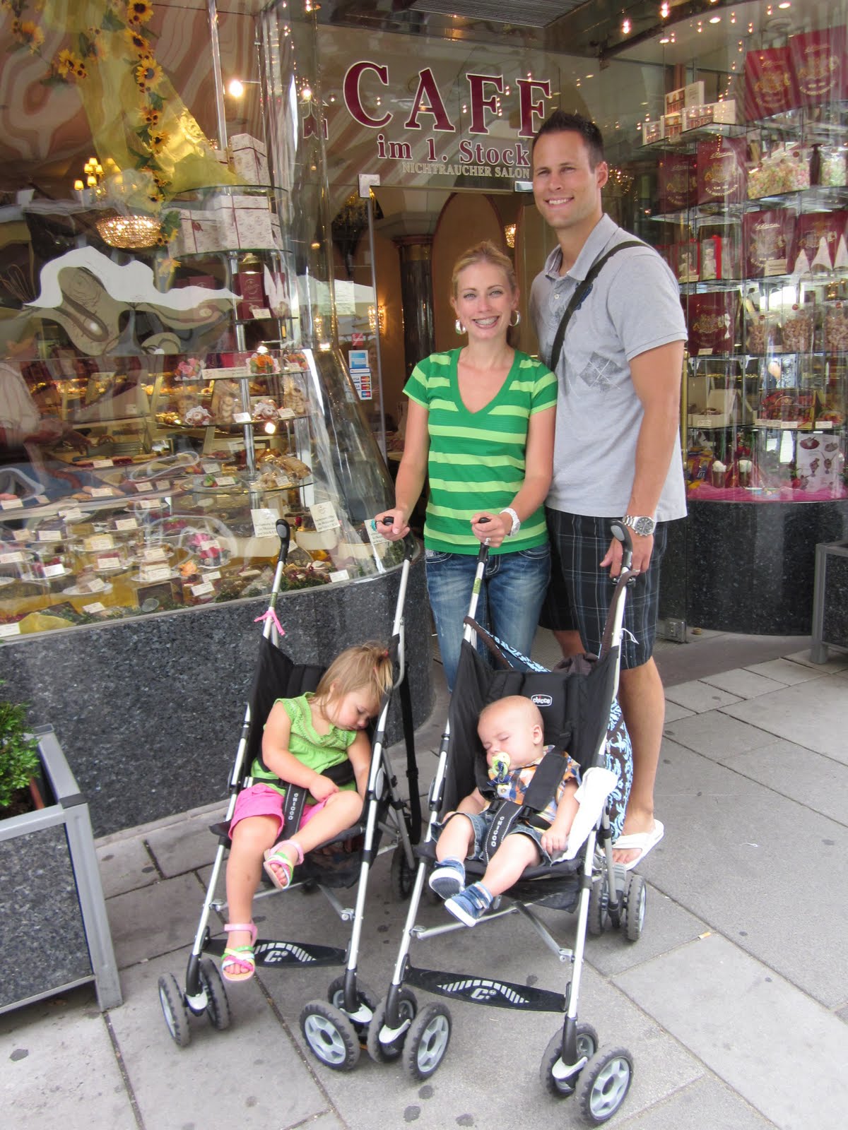 Yay! We met up with Lovie and Papa Jay in Vienna!! We stayed at the WONDERFUL Hilton Vienna Hotel. Since we had two babies, they gave us an extra big corner room with windows over looking the park on two sides. (My mom pointed out several times that our room was twice as big as theirs :)). Kensington was SO happy to see my parents. On the hotel shuttle from the airport, she announced to everyone that she was going to see Lovie.