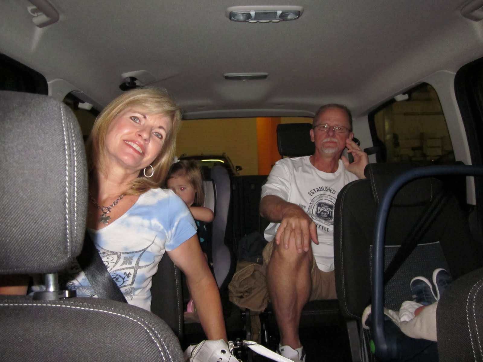 On the way to Germany, Kensington slept in her car seat with her foot propped on Papa Jay
