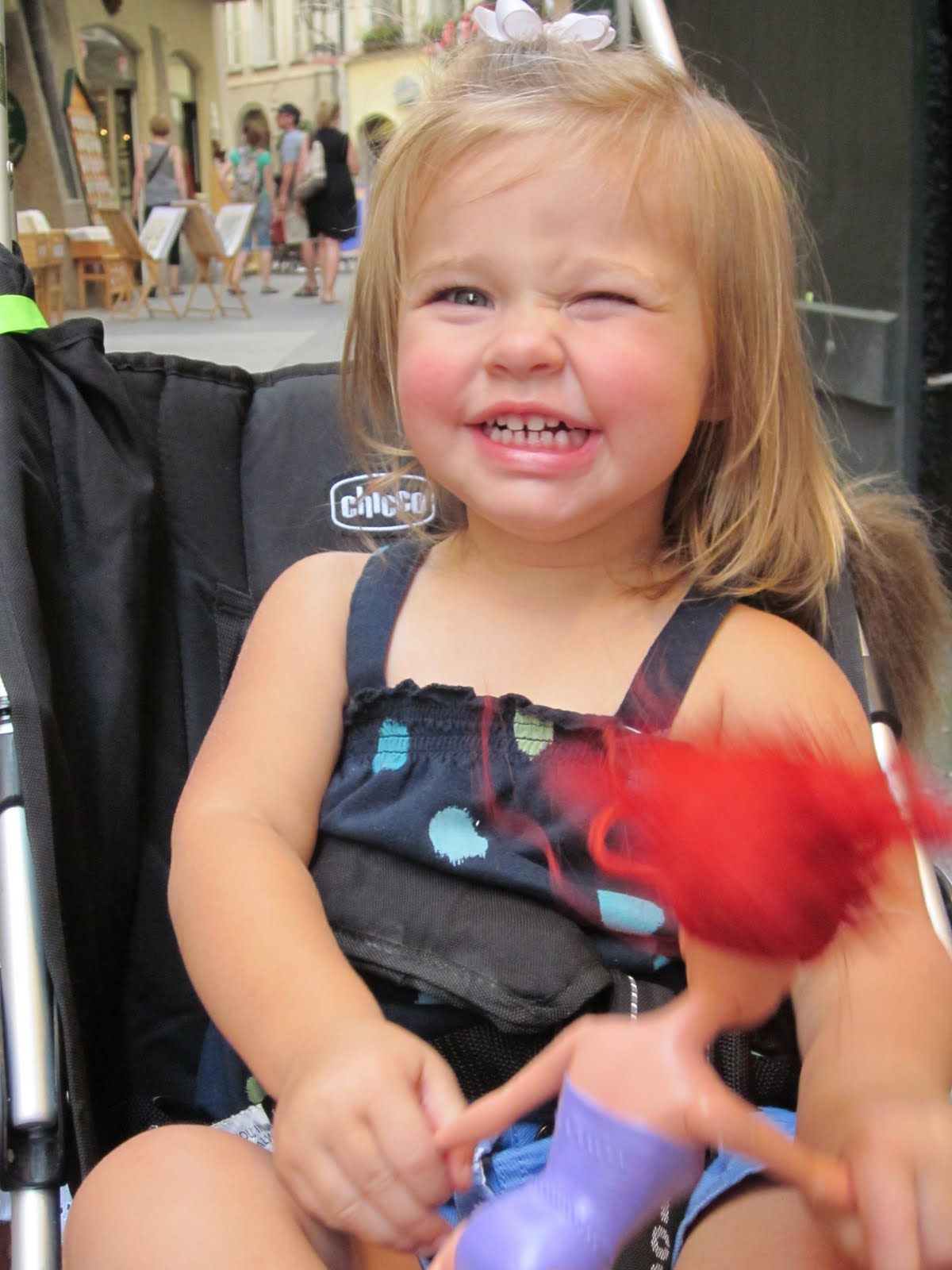 I bought her a little Austrian baby doll who of course, had to ride in the next stroller 🙂