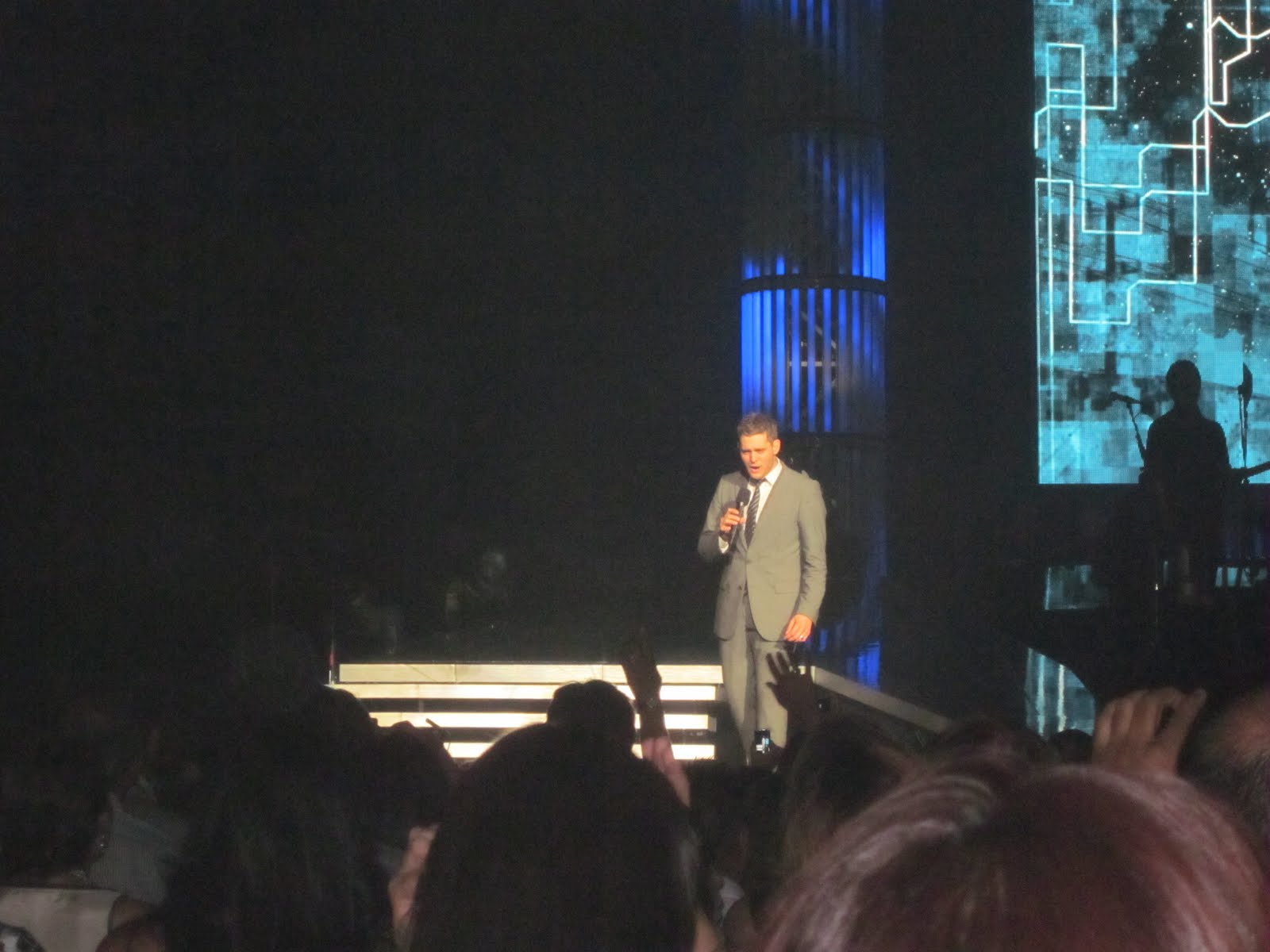 Ummm…Andrew failed to mention that he had gotten us floor seats. We were 19 rows back. By this point, I was completely ecstatic. Seriously…I’m anticipating the knock on my front door any day now with a man serving me my restraining order. I just love Michael Buble :).