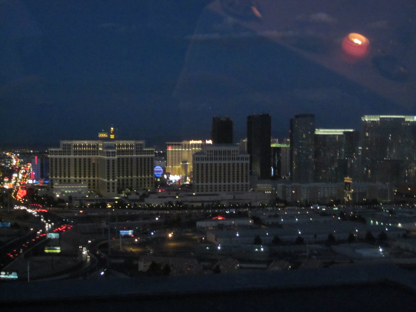 Andrew had made us reservations at a steak restaurant on the top of the Palms Hotel. It was named “best view of the strip”. I would agree. This is the view from our table on the 55th floor.