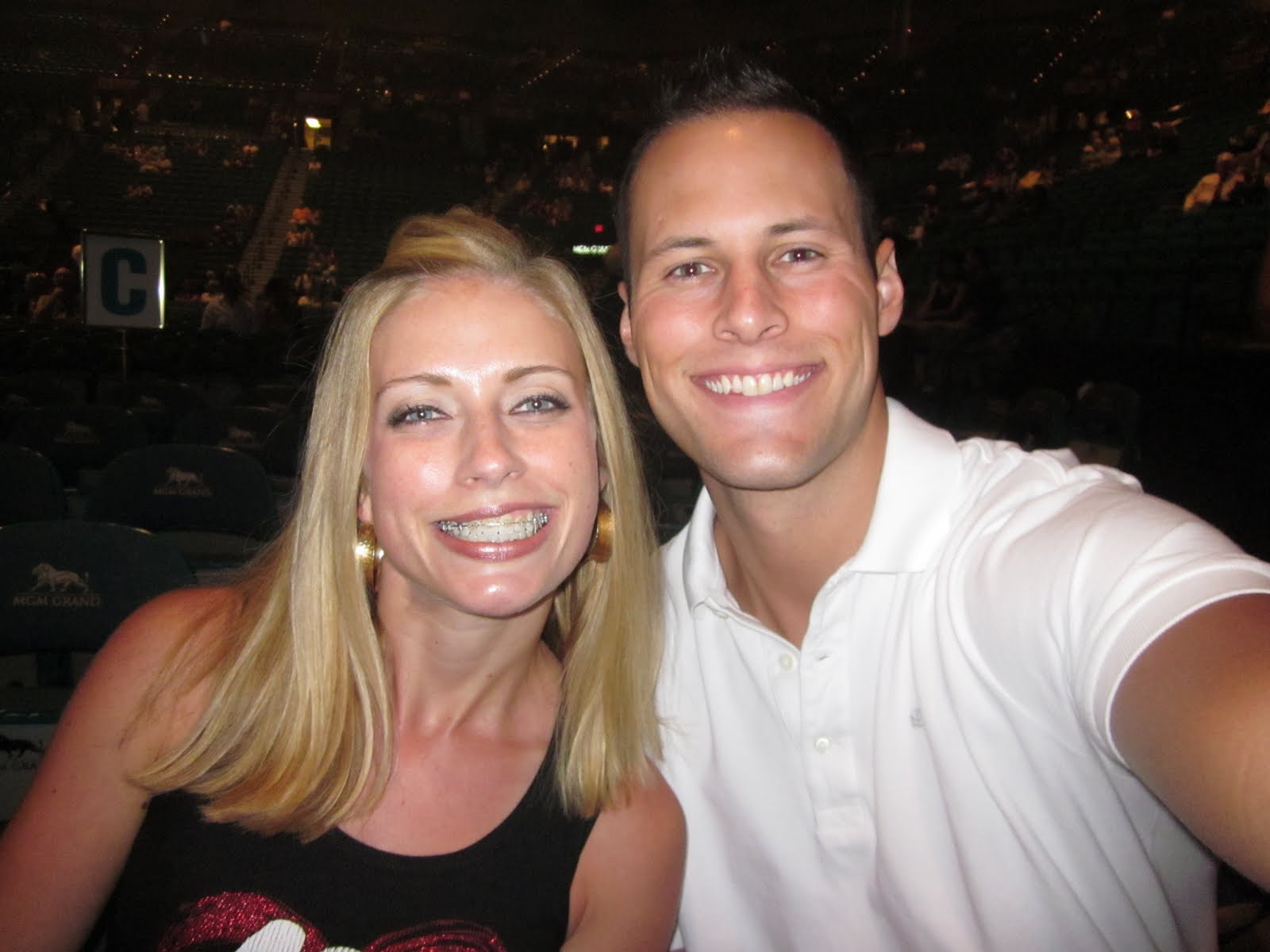 So, half way through the concert, Buble says that since it’s his last concert of the tour, his entire family and fiance came to watch. There were over 30,000 people in the MGM Grand Arena and when the spotlight hit his family’s seats, they were NEXT TO OURS! We were sitting next to his family the entire time and didn’t realize it. There was my seat, Andrew’s seat, a three foot walkway then his parents’ seats. This is his mom and dad. He introduced them and his grandparents to the audience. Crazy, huh?