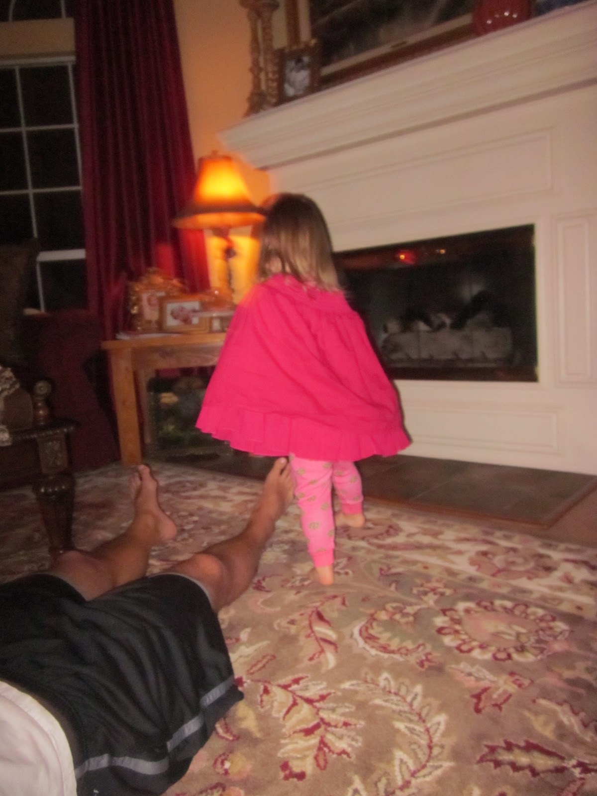Well, Kensington does. Every Monday night, we turn on DWTS and she dances right along with them. Yesterday afternoon, she got a pink skirt out of my closet and brought it to me. She asked if she could wear it. She wore it ALL day. She wore it outside, she wore it inside, she danced in it and then when it was time to go to sleep, she asked if she could sleep in it. Her daddy said yes.