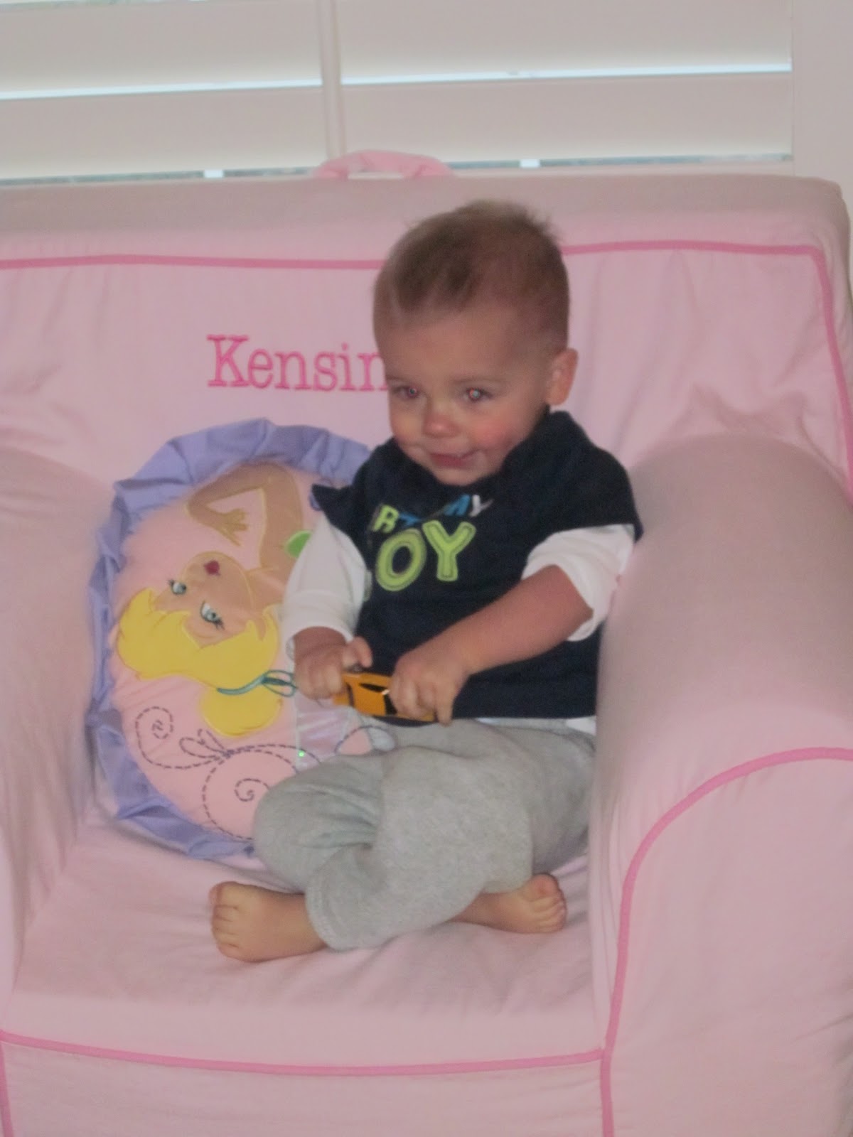 He climbed in and out of Kensington’s chair (with his matchbox cars).
