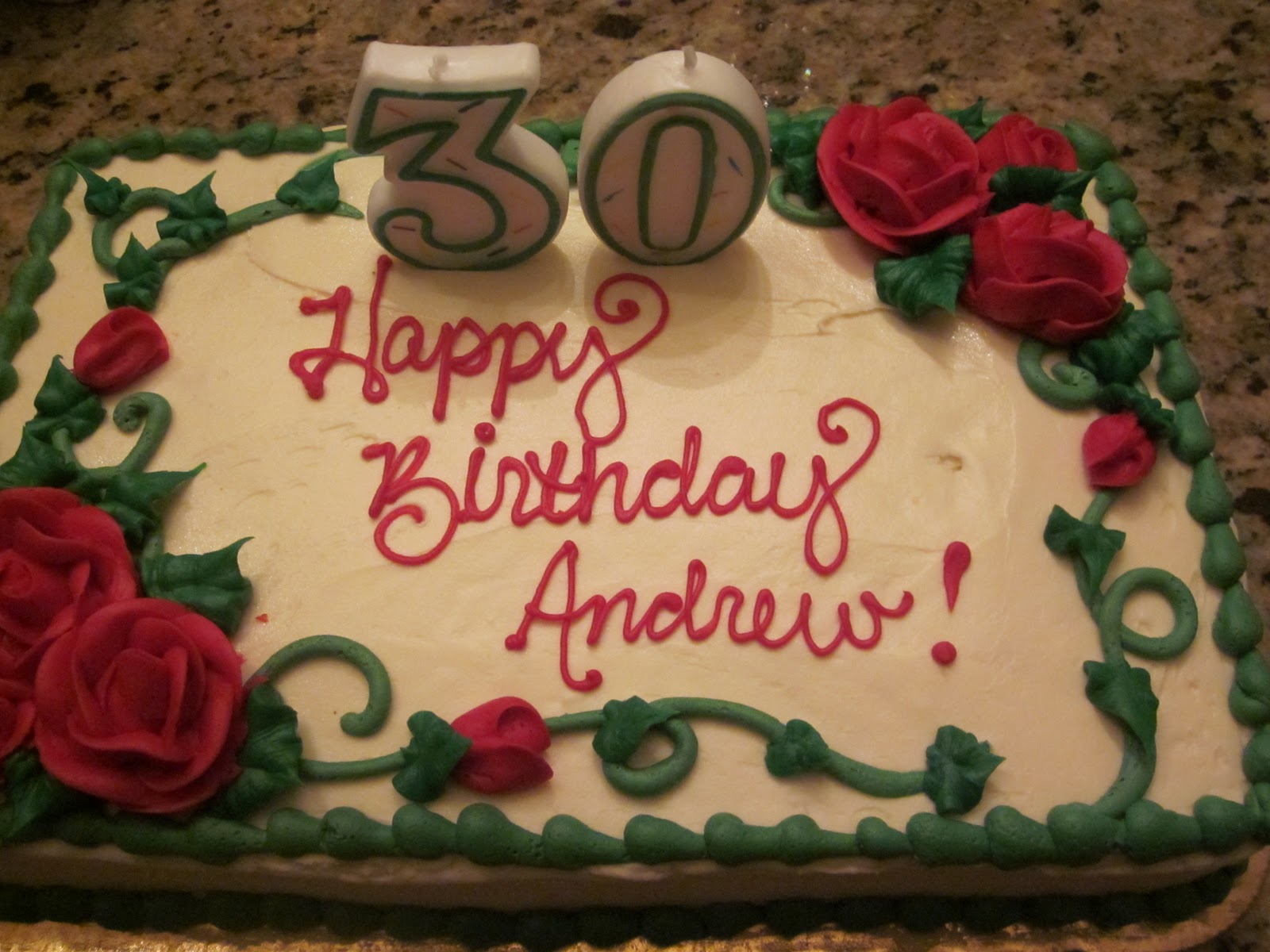 In honor of the big 30, my parents created “Andrew Pictionary”. We played girls against guys and all of the clues were either things that had to do with Andrew or his birth year. This was my favorite part of the night (next to the cake of course).