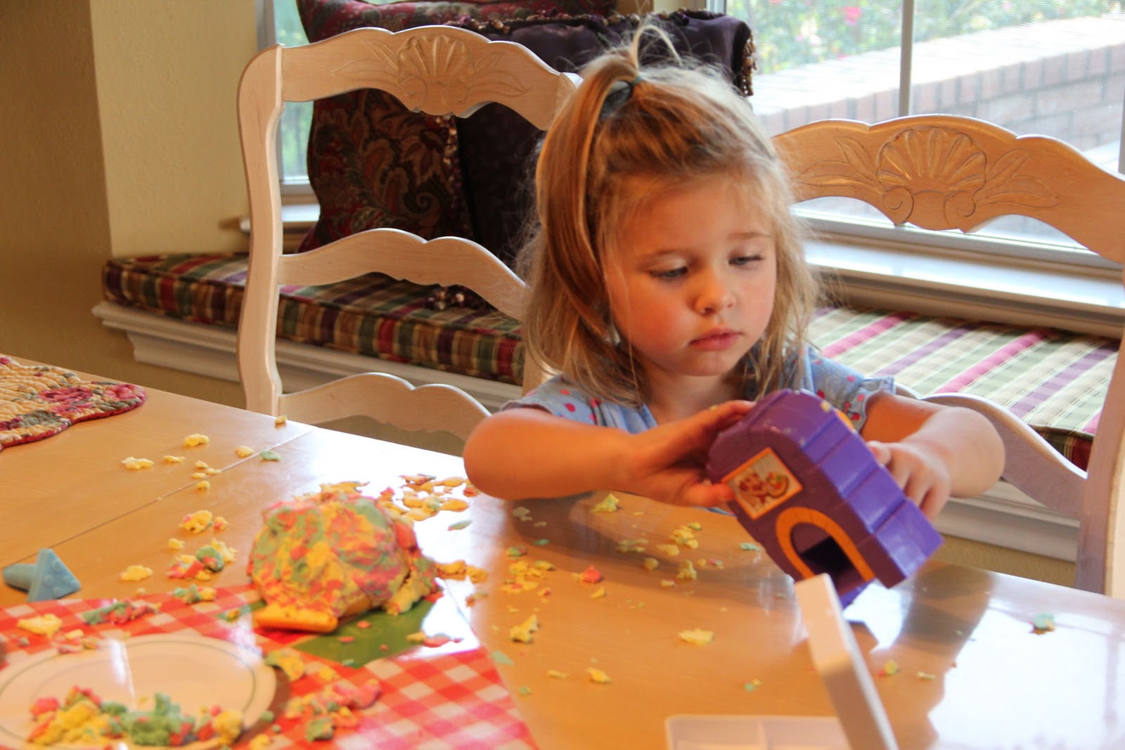 While I cooked, Kensington played with her Play-doh pizza kitchen :).