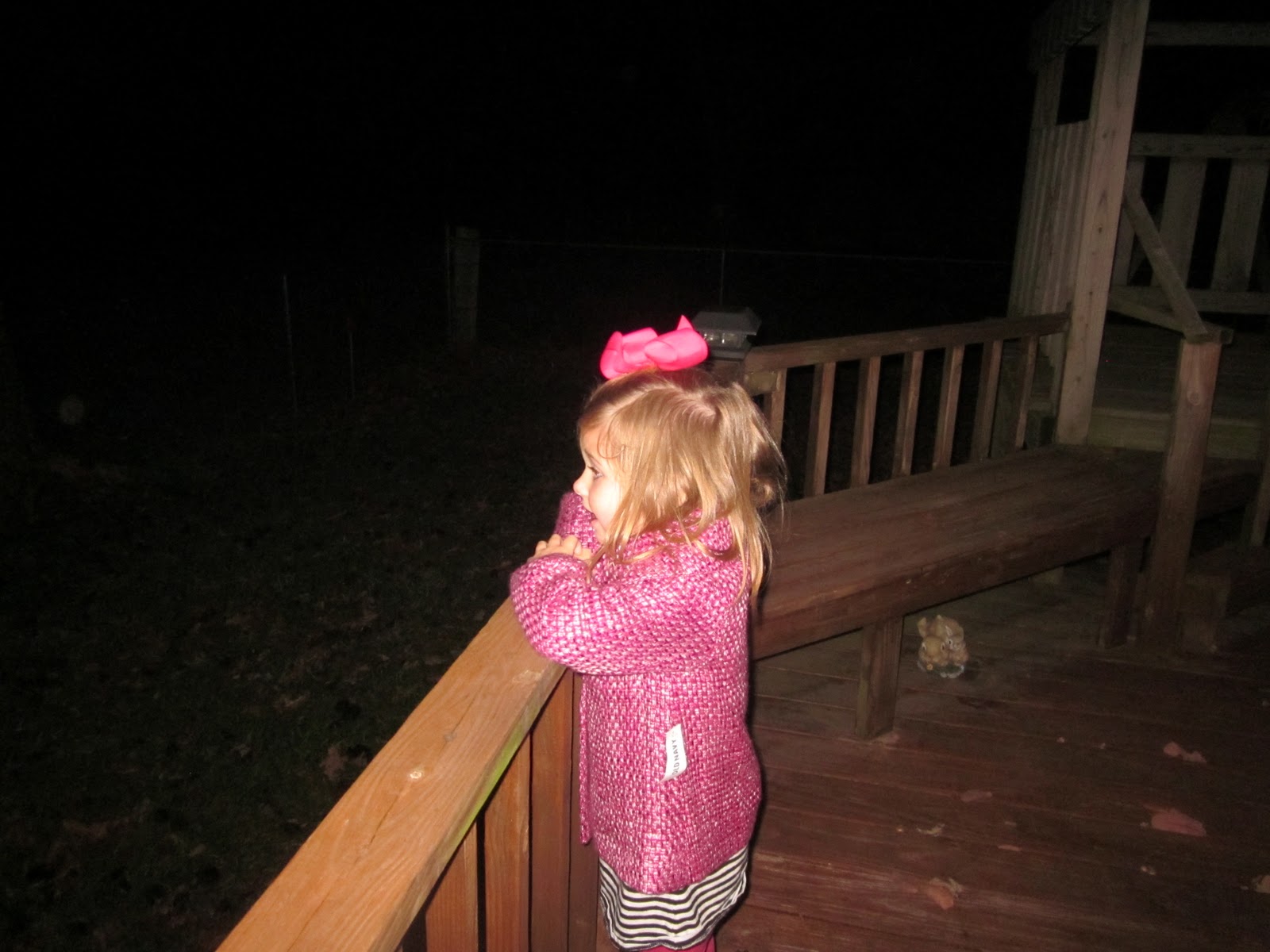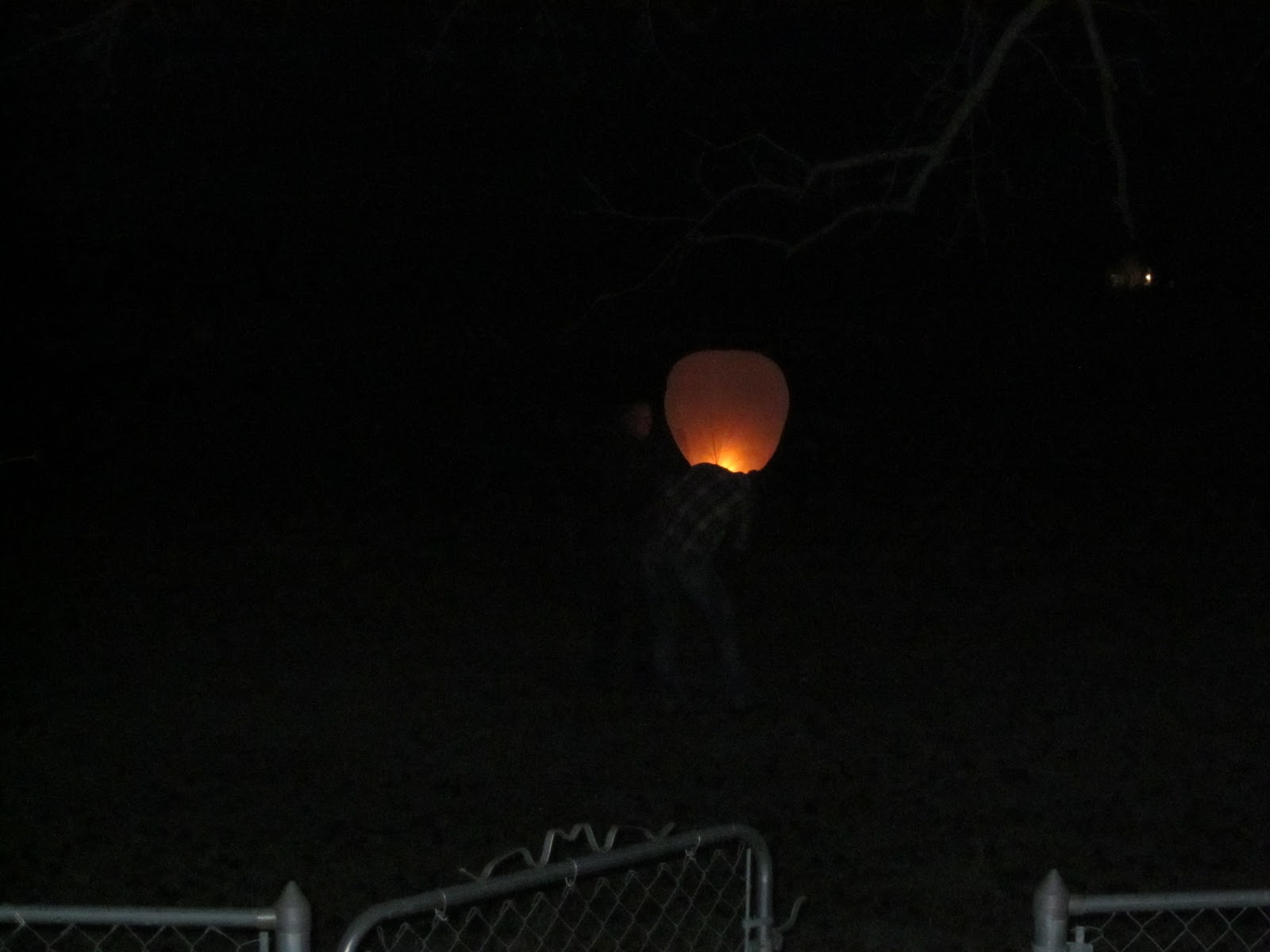 Then we did the coolest thing EVER! Way back in September, when we had K’s Tangled birthday party, I purchased these Chinese lanterns (like from the movie Tangled)…well, Texas still had a burn-ban, so we weren’t able to send them up. Sooooo…we took them to Missouri and set them off there instead. Words can’t describe how cool these lanterns were. They were big (about the size of Smith) and floated waaaaaaay up in the sky. It was just like the movie. (You’ll notice, my sweet girl was so excited to watch that she ran outside before I could cut the price tag off of her jacket!).