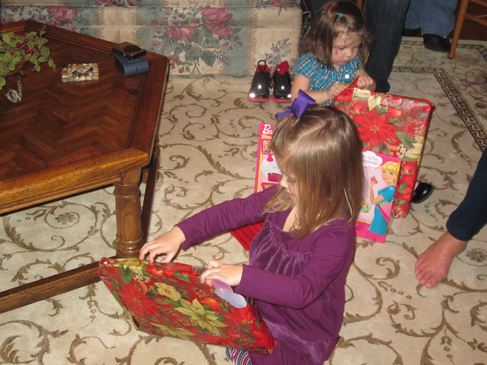 Then on Friday night, the whole family came out to the farm to celebrate Christmas. Here are the 4 Shull grandkids lined up for their gifts. Kensington (3), Sylvia (2), Brode (5) and Smith (2 in 2 weeks!)
