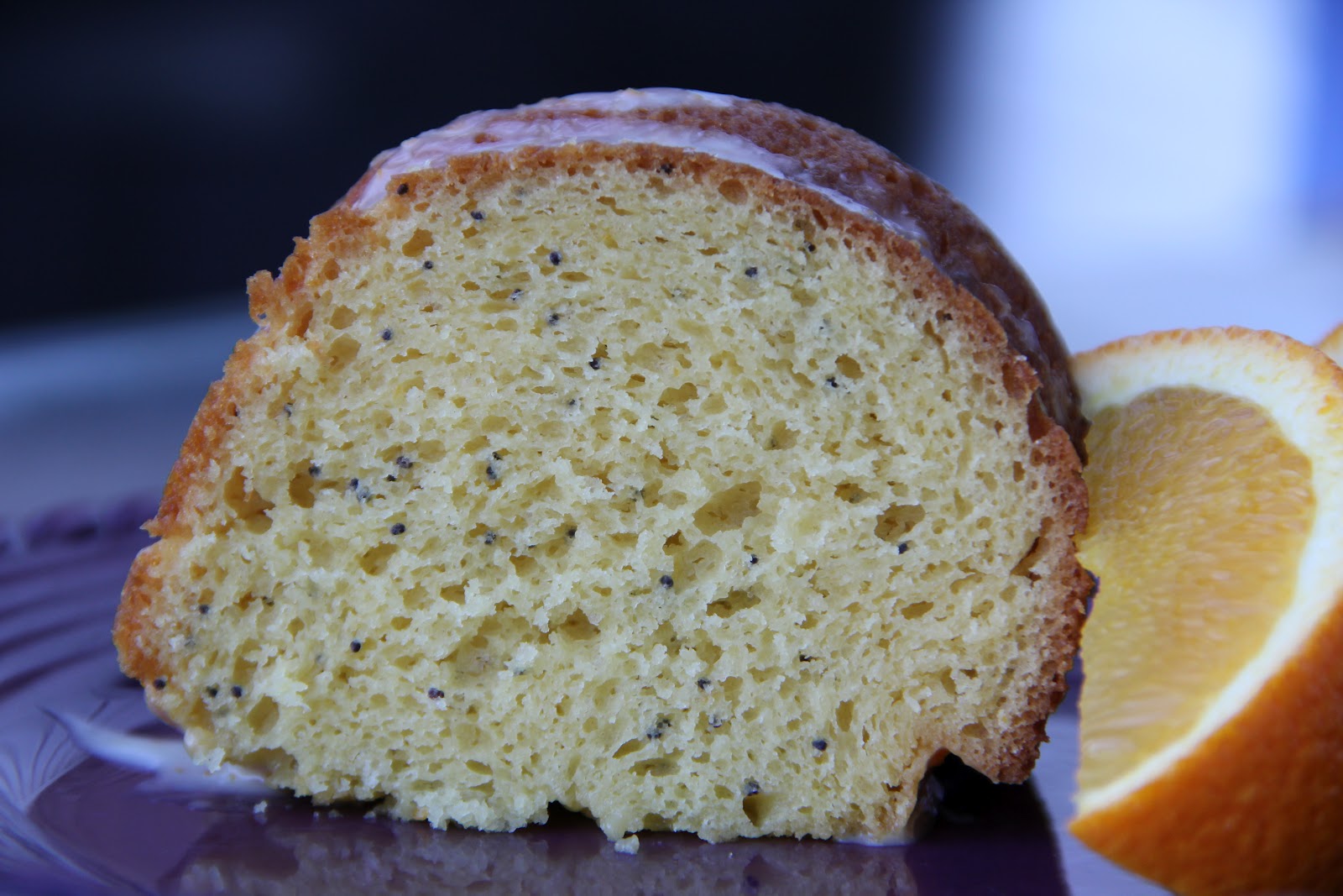 In mixing bowl, combine cake mix, puddings, oil, water and eggs with electric mixer. Stir in poppy seeds and half of your zested orange (reserve the remaining half) and half of the juice of your orange (reserve the remaining juice). Pour into prepared pan and bake 40-45 minutes or until toothpick inserted comes out clean.