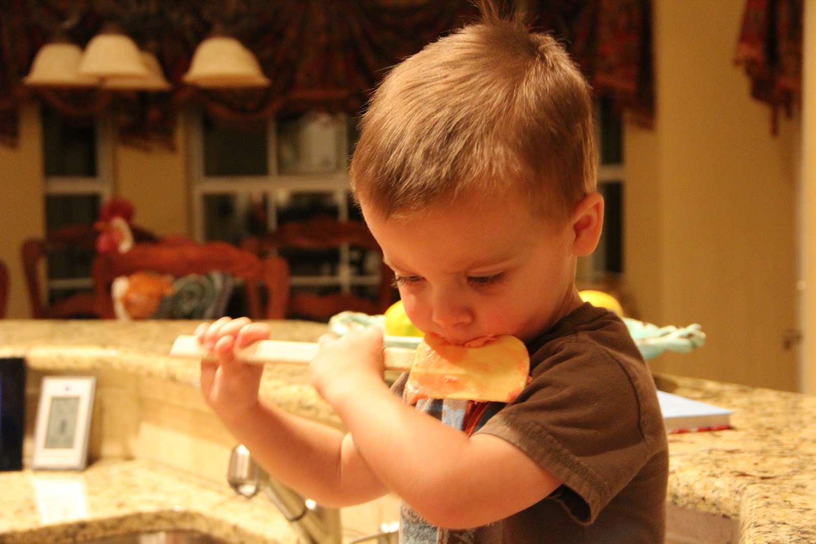 His favorite part is licking the spoon after we’re done making the cookies.