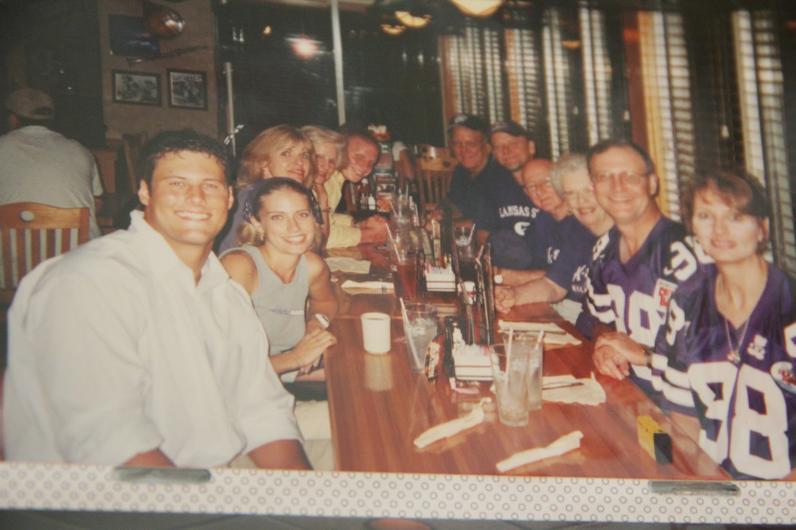 This is Andrew and I on our first date. Didn’t you date with both sets of your parents, your younger brother and both sets of your grandparents? Well, we did! We had met once before but we actually went out to dinner to get to know each other after the first K-State football game of the season…unfortunately, we had to bring along everyone else! Here we are, getting to know each other at Applebees. I remember Andrew thinking it was funny that I ordered dessert for dinner…he learned quickly that the way to my heart was through sugar :). A year and a half later, we were married. Happy Anniversary baby!