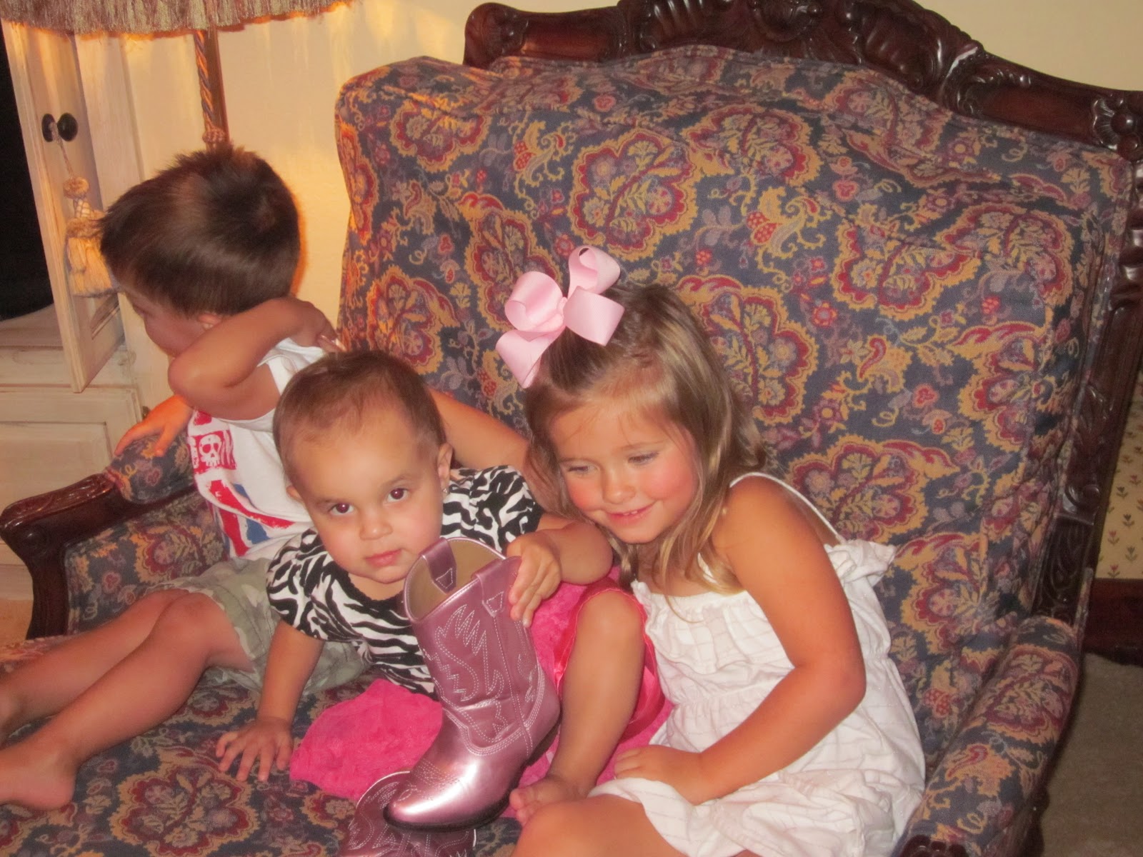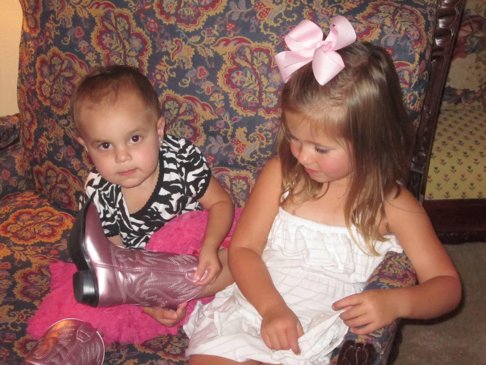 Paisley showing me that she was wearing K’s boots.