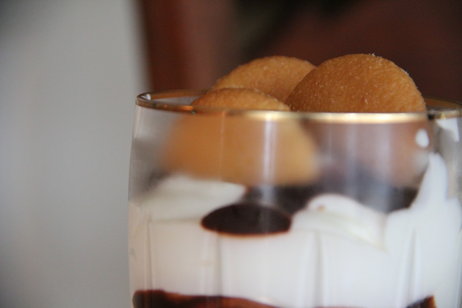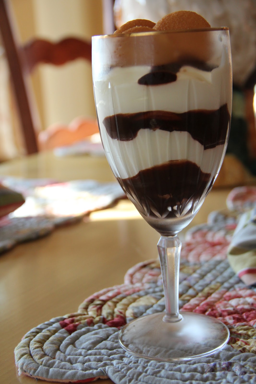 In a large trifle dish (or individual dishes), layer cookies across the bottom, drizzle over some chocolate, add 1/3 of your pudding mixture and repeat 3 times.