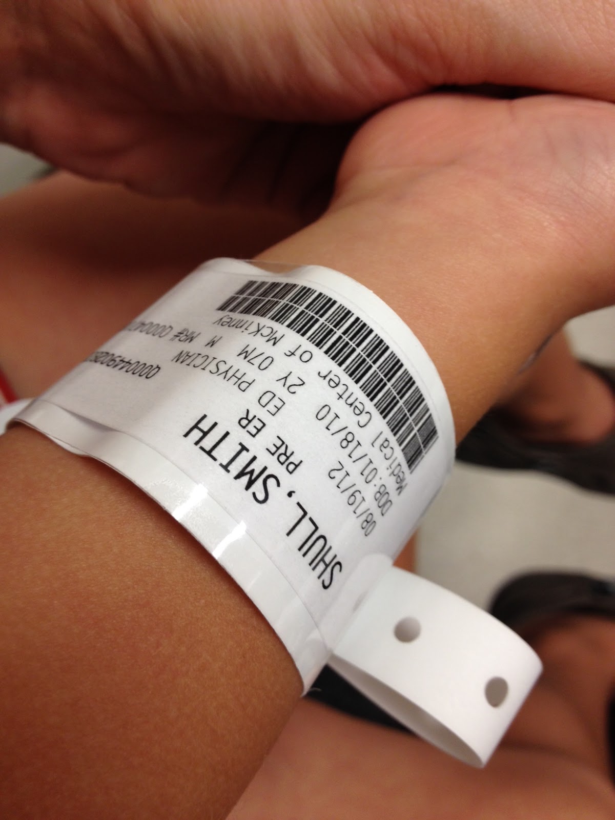 On Sunday night, Smith woke up from his nap with a fever and complaining of head and neck pains. I called our good friends the Smiths (who are both in medicine) and asked them what to do…Sarah told me to bring Smith to her house for a quick temp check and exam. (We joke that the Smiths should charge a co-pay at their front door because it’s a revolving door of our friends and their kids with medical problems!) Anyway, Sarah called her hubs who was luckily working in the ER that night and he said for me to bring Smith in.