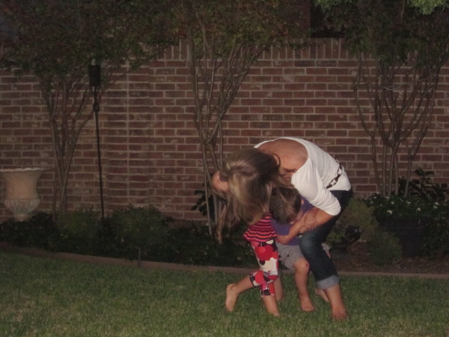 My mom spent the majority of the evening in the backyard chasing these two silly kids…