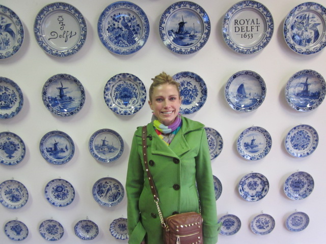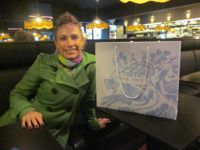 First stop…the city of Delft! Delft is famous because it’s the home of Royal Delft, the blue and white pottery. My mom is o-b-s-e-s-s-e-d with blue and white, so I knew I needed to go to the factory itself and find her a treasure (especially since she watched my kids for 10 days!). (You can tell that it’s cold out! Look how bundled I am under my coat!)