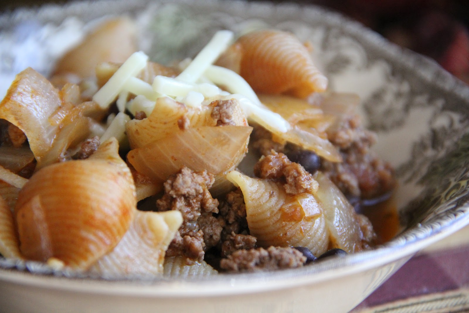 Is it chili? Is it pasta? What is it? It’s a one pot wonder, that’s what it is! Thanks again to the fabulous Kraft Food and Family magazine for having a recipe like this one in their September issue. I tweaked this just a tad…but let me tell you…it’s fabulous.