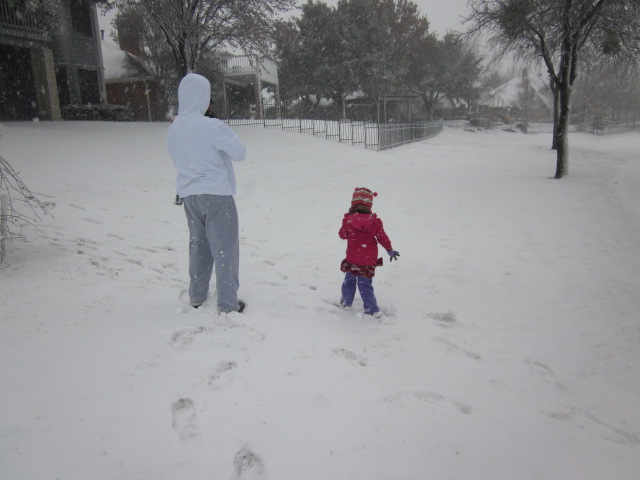 Dallas weather is funny. Last year, it didn't snow one time…the year before, it snowed so much, schools were closed for 7 days. There really is no rhyme or reason…it can snow in Thanksgiving and it can snow in April…or it won't at all. I would guess that we usually have 2 or 3 snow days a year…but again, Dallas weather is crazy. We also usually have 100 days over 100 degrees…that stinks.