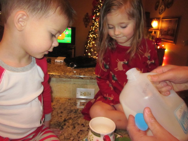 After looking at lights, we drove home and got ready for Santa to come over. Cookies and milk!