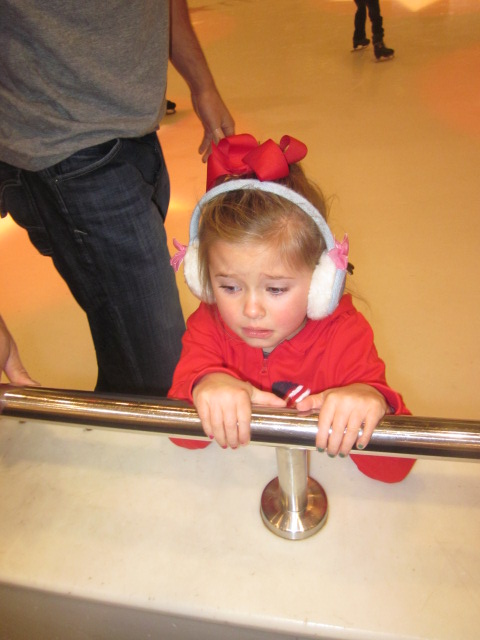 She gripped the rail the whole time. She was not enjoying her skating. Apparently, it’s harder on ice than she thought.