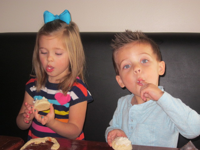 On Saturday, we did a lot…but I only managed to get this one picture of them eating Christmas thumbprint cookies. Love my kiddos!