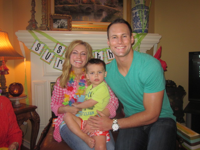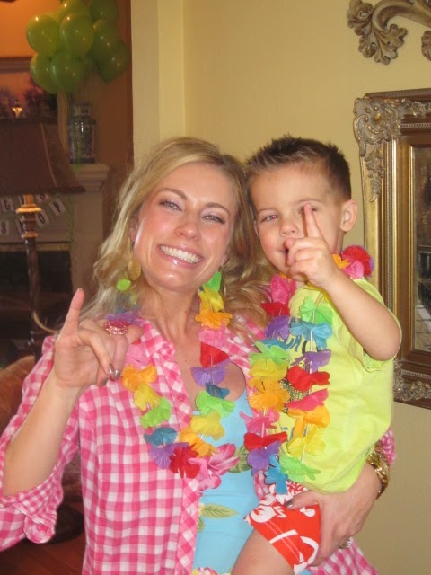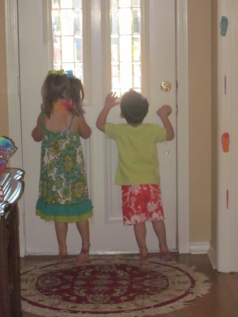 Waiting on their guests (Smith was super excited to wear his swimsuit to his party :).