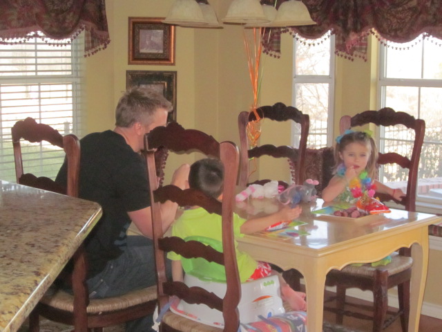 Sean and the kiddos eating lunch…these three stick together!