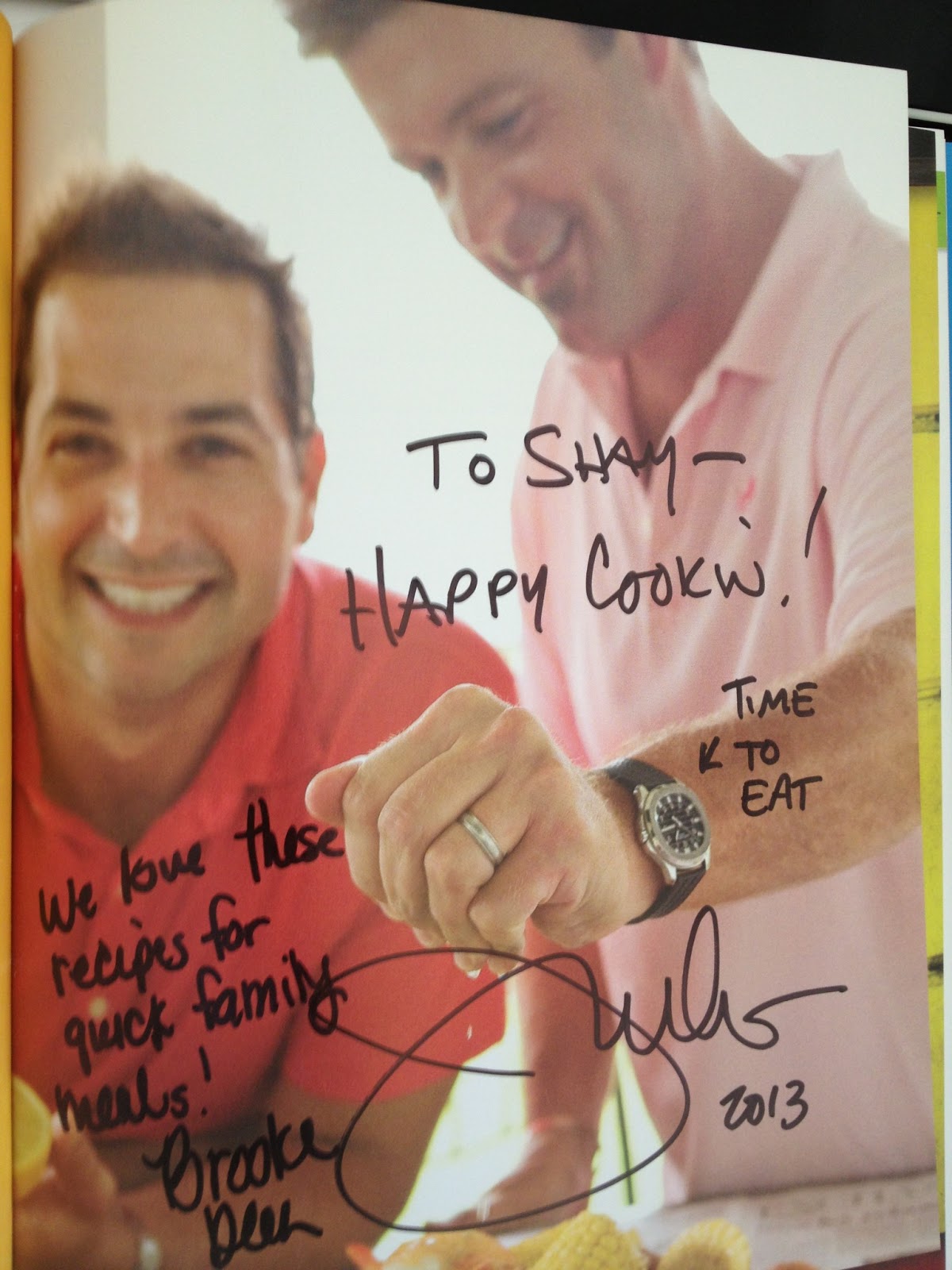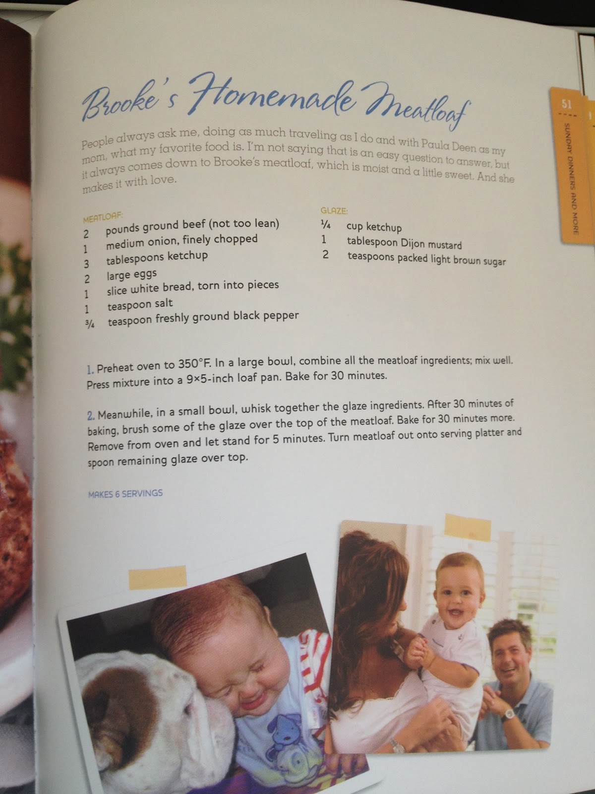 Aww, how cool! I love how they personalized the cook book with the little notes. 🙂 I'm a fan of some Deen cooking myself. Yum, yum! Thanks for sharing this. I'll be swapping out my tired old meatloaf recipe for this one.