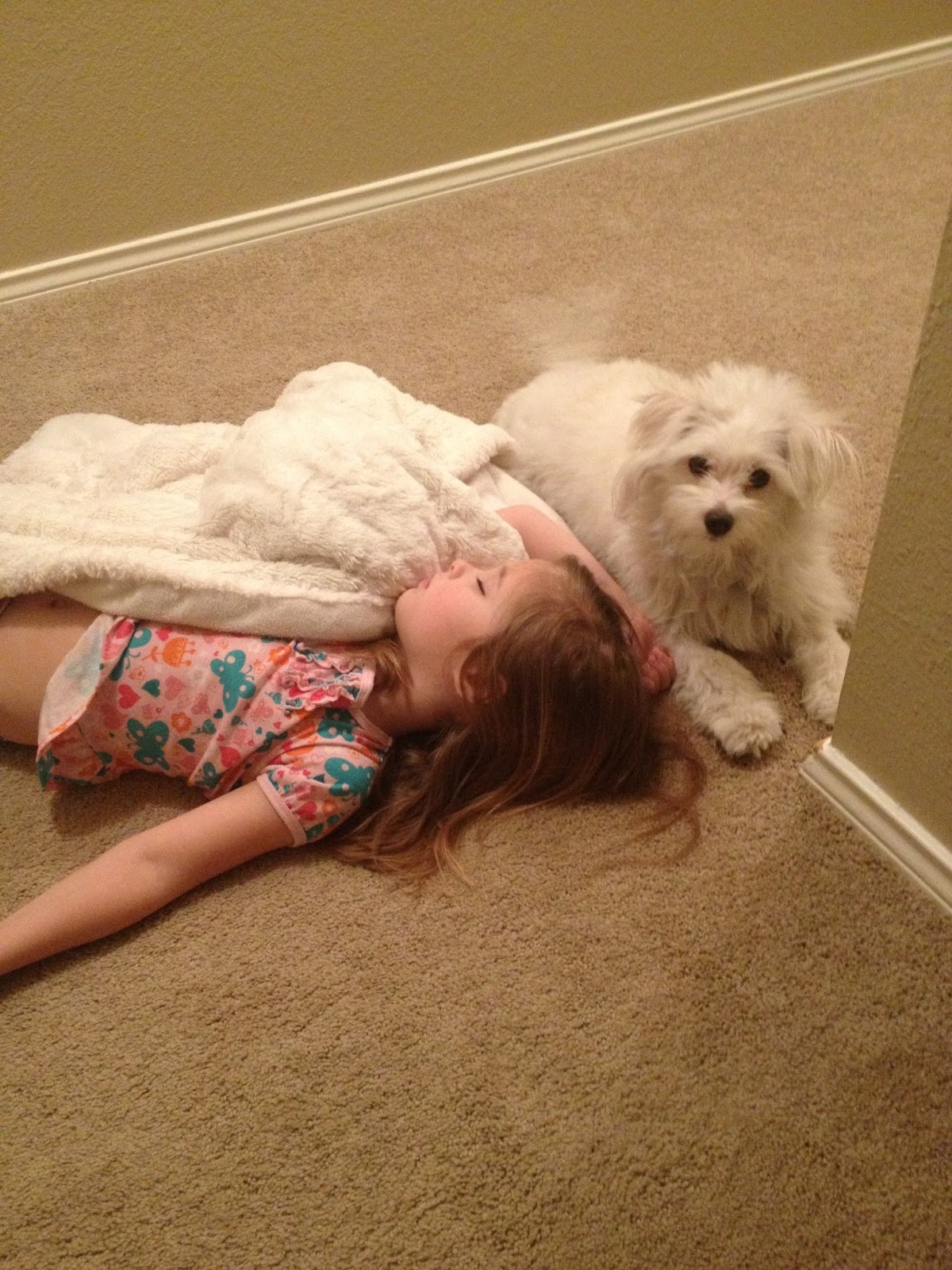 On Friday, I blogged about finding Kensington asleep in the hallway…well, on Friday night, we found her again! This time, she had company :).
