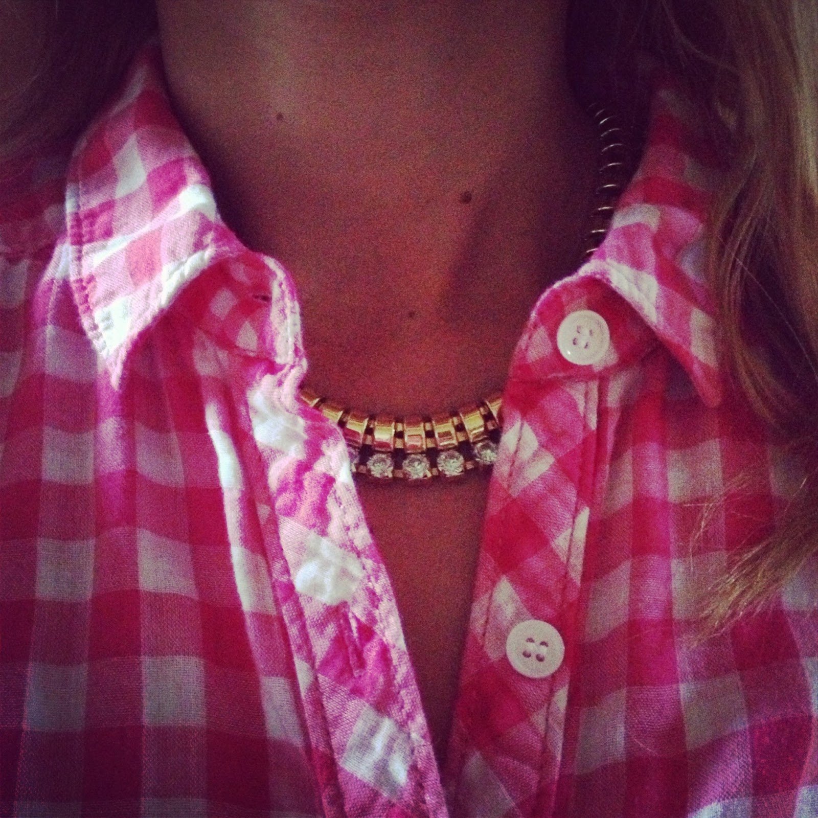 Free jewelry from Courtney? Color me jealous. That necklace looks great with your pink gingham!!!!