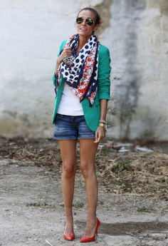 I have been wearing a scarf with my shorts for years and years. A light scarf is nothing more than a big necklace (it’s not for warmth during the summer…it’s just an accessory). In fact…one of my friends (Sheaffer!) used to mock me for it…and now look who wears them all.the.time…