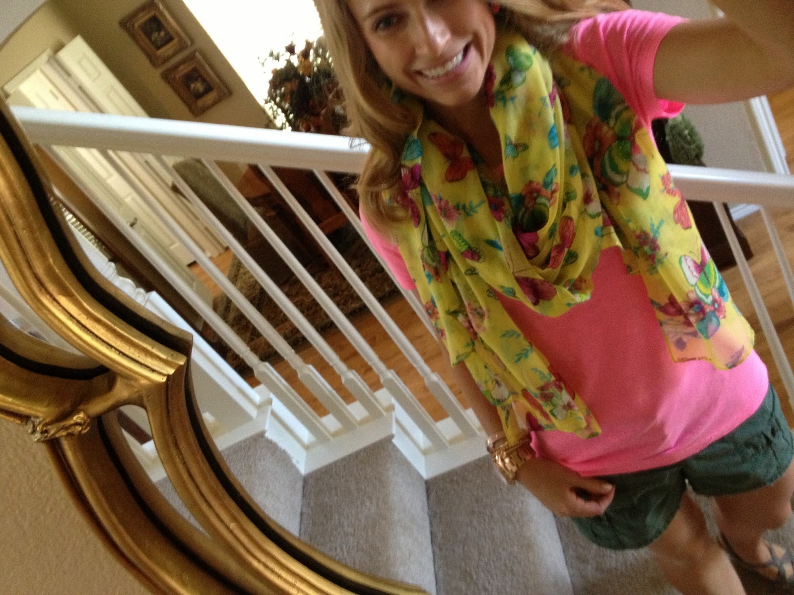 I am a huge fan of pairing scarves with my summer wear!! I'm glad to see I'm not the only one!! As for that pink gingham top, I bought the kelly green one last weekend at the half yearly sale…and am IN LOVE with it!! But, I am definitely going to have to pair it with a statement necklace because I love what you did with it. Adorable!