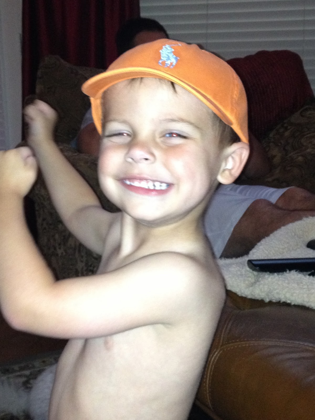 I asked Smith to go put his pjs on…he came downstairs completely naked but with a baseball cap on his head. It’s never dull.