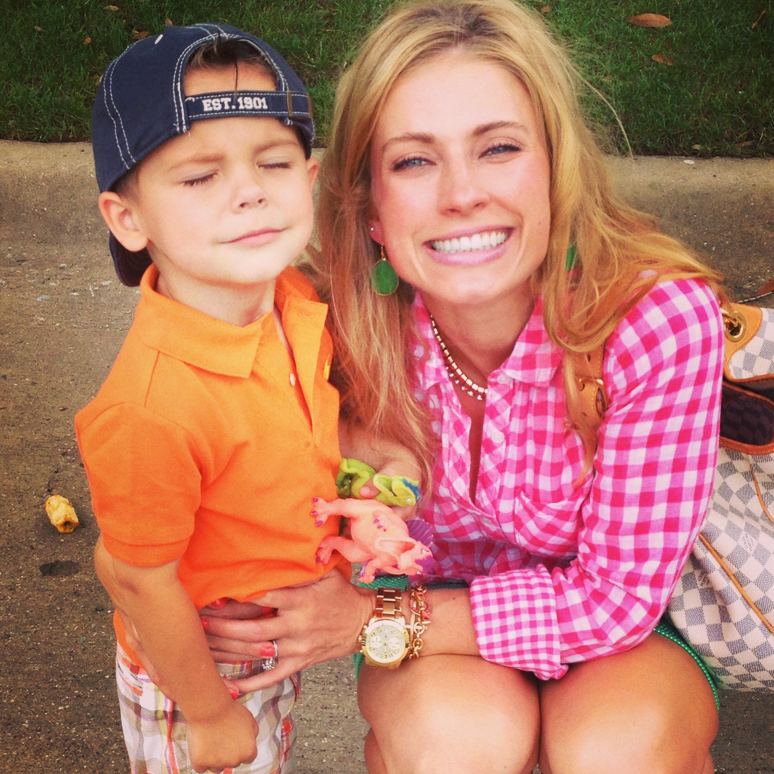 That picture of you and Smith is so cute! Love that pink gingham shirt with your S and D green earrings. 🙂