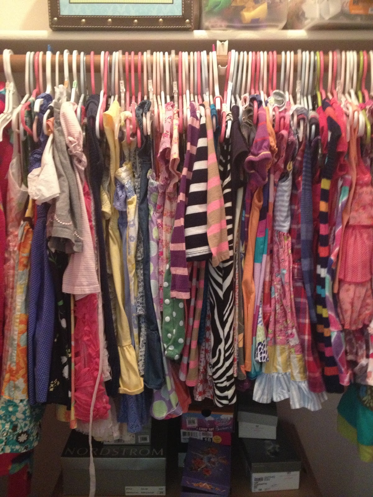 I clean my kids closets out a lot – but I also get rid of my own clothes if I'm not wearing them while they are still in style. I'd rather get rid of the stuff I don't wear and have more $$$ to buy new clothes for myself 🙂