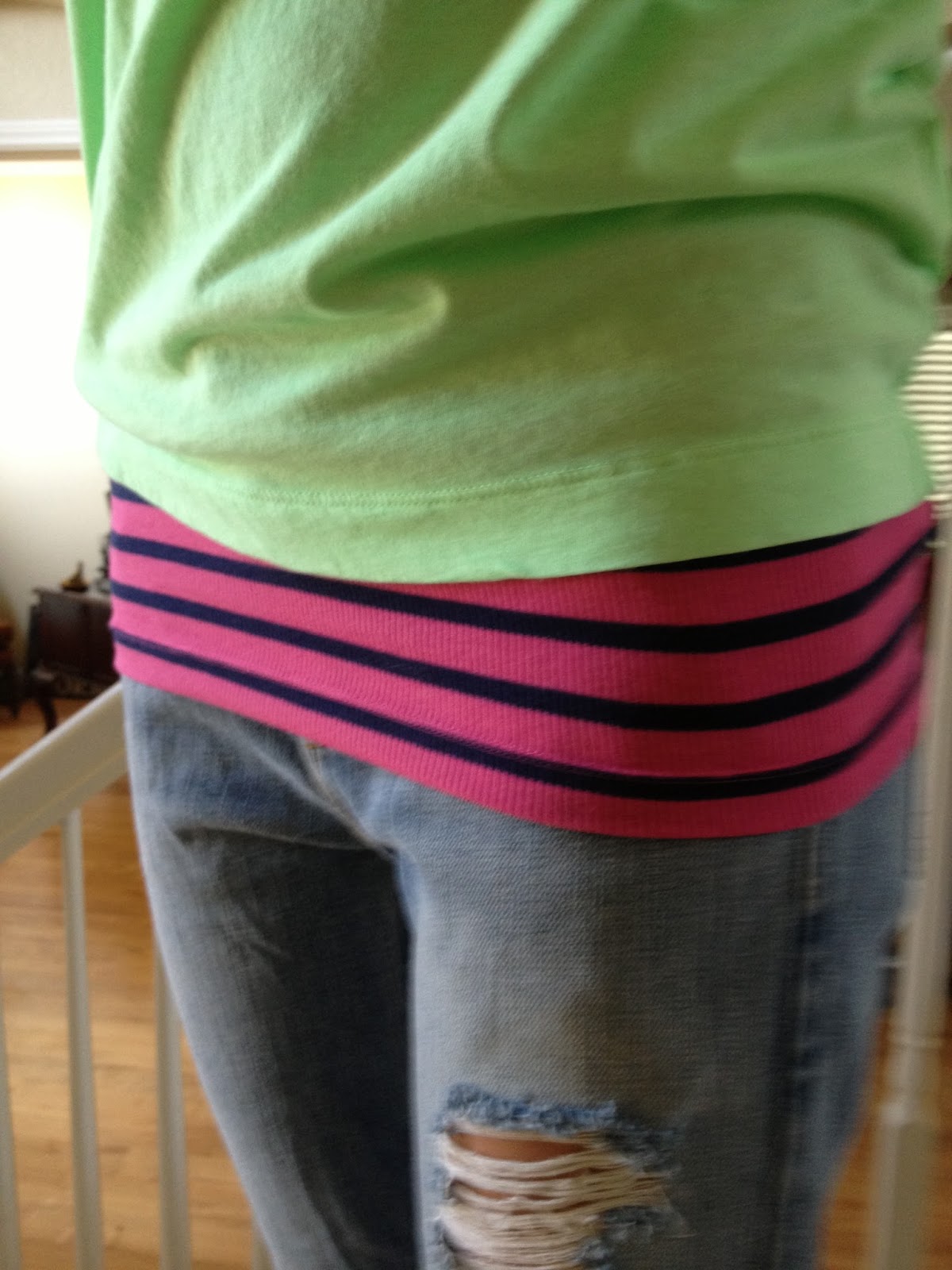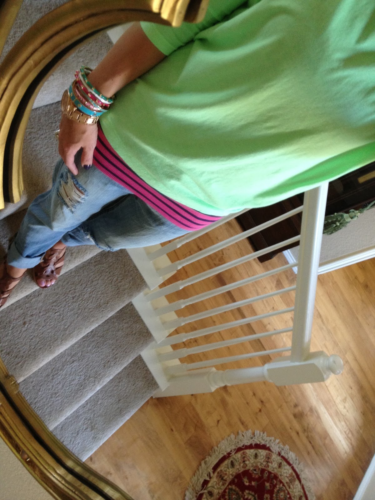 Again, I layered for September. This time, I used a little color from my summer wardrobe, but when I paired my green tee with the longer pants and striped tank, it worked!