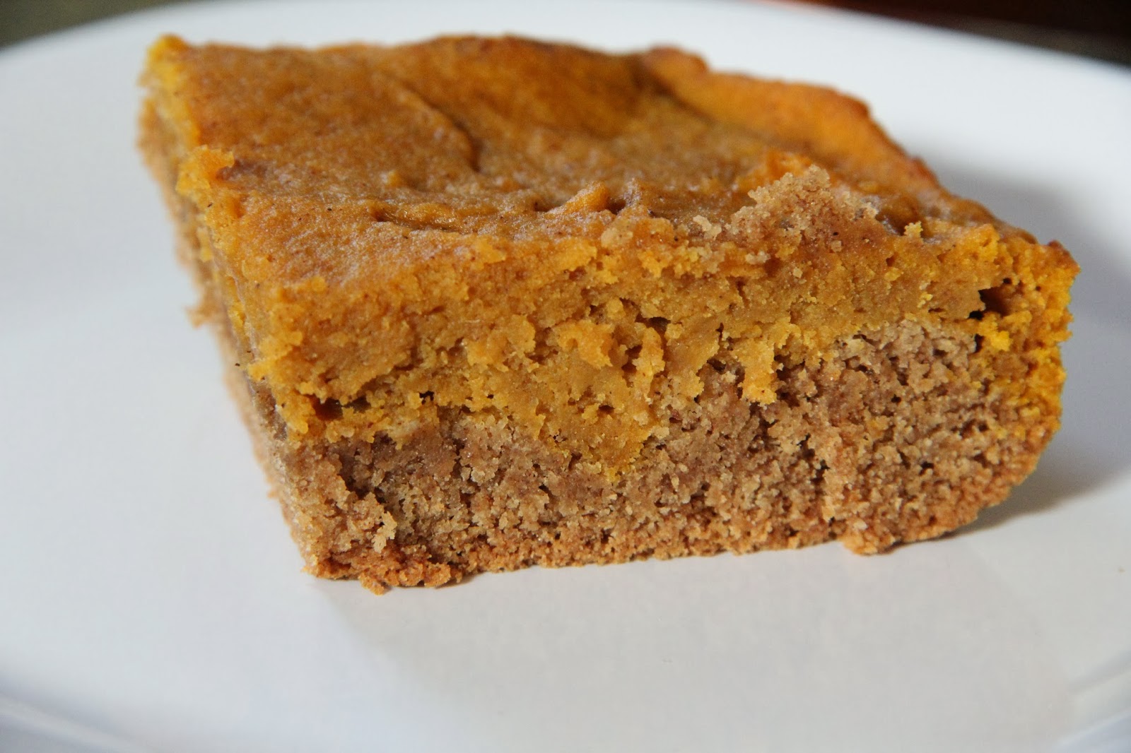 Spread the pumpkin mixture down on top of your cake mix layer in the pan. Bake 38 to 40 minutes.