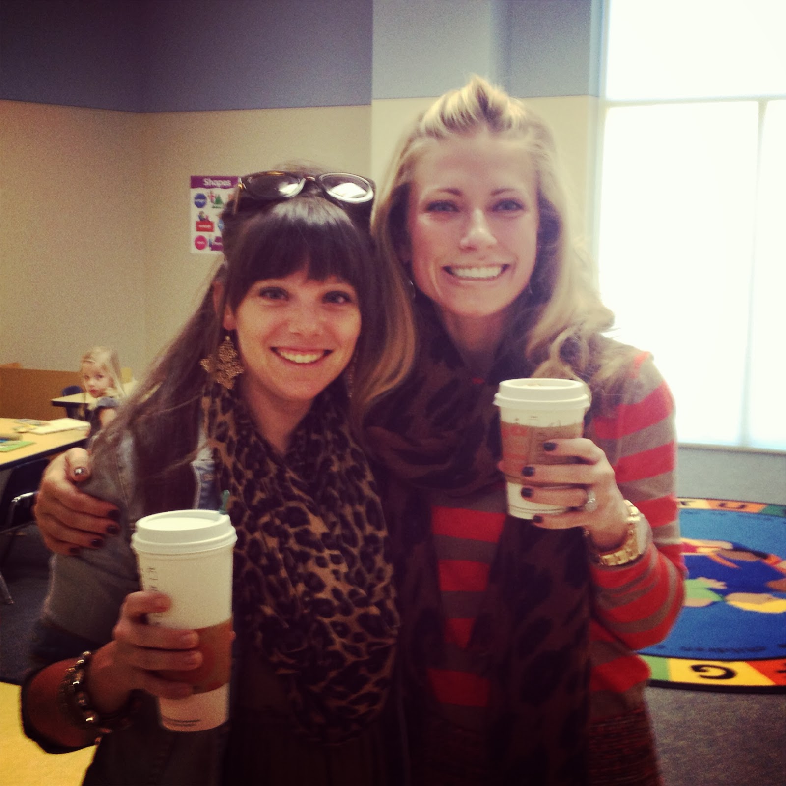A fabulous friend is one who shows up to teach Sunday morning preschool with you and brings you a Pumpkin Spice Latte (to go along with her black tea) and you’re both wearing leopard scarves. I think sweet Andrea is pretty fabulous :).