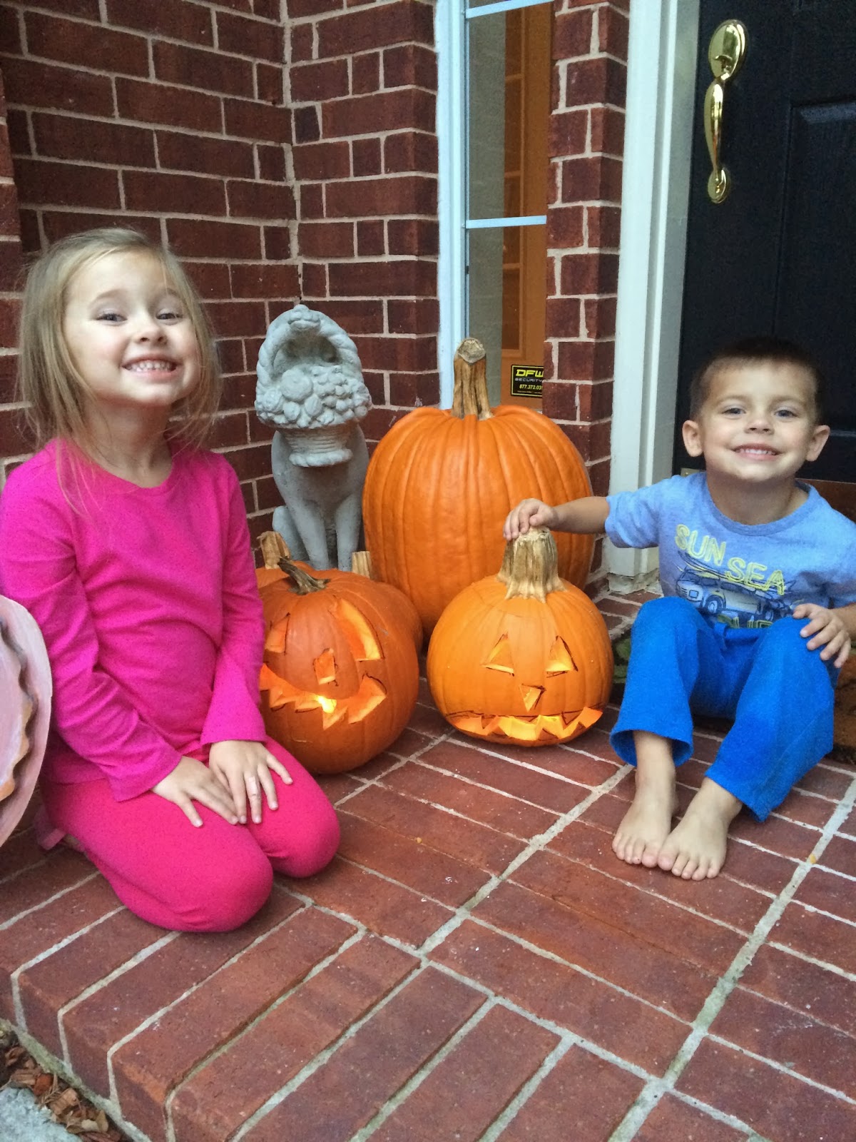 Love how excited the kids are about their carved pumpkins! SO CUTE! And the tumbling unicorn? Precious.
