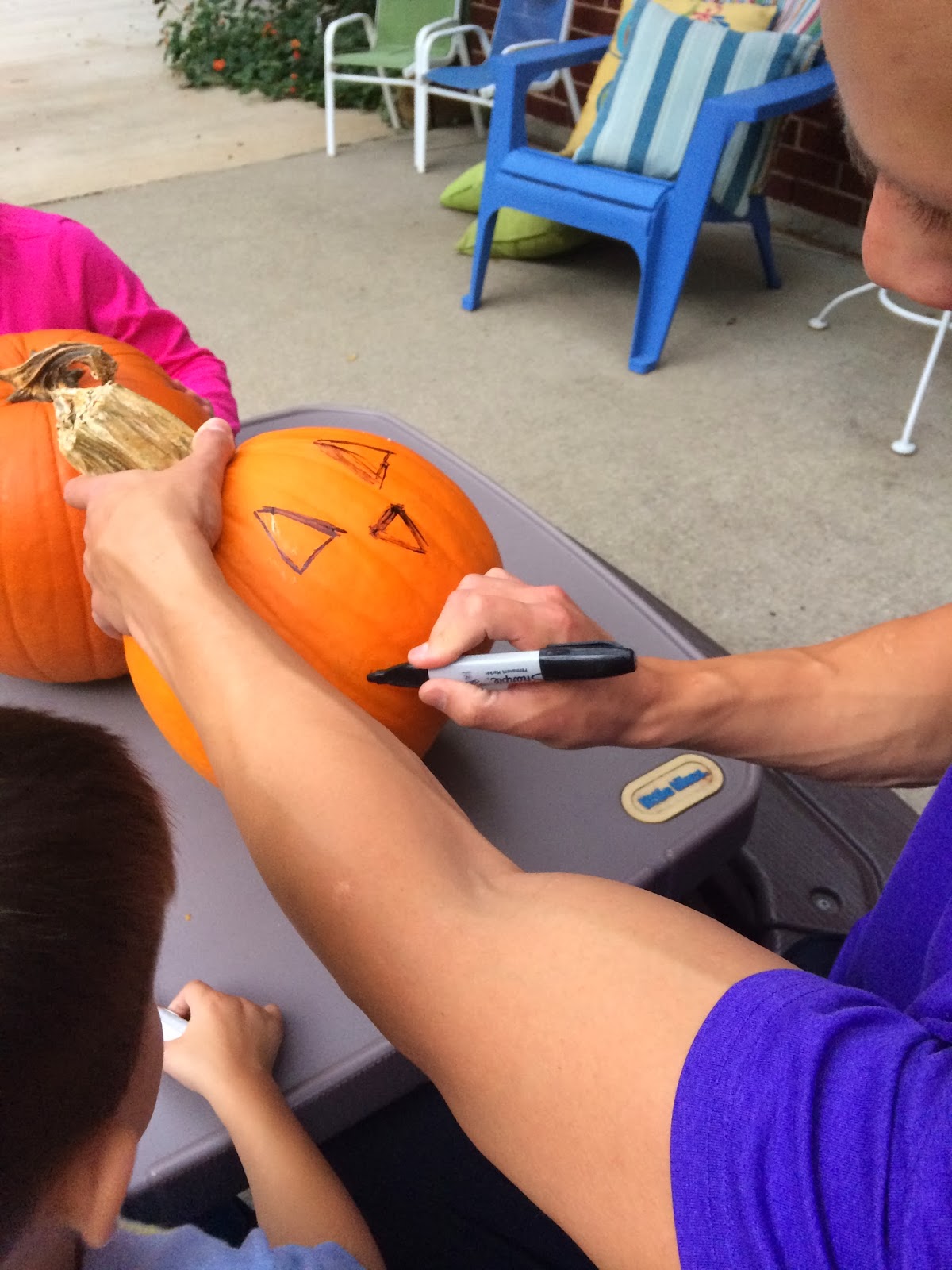 The kids pumpkins turned out great! I love the classic jack-o-lanterns with scary faces. That's how we did ours this year.