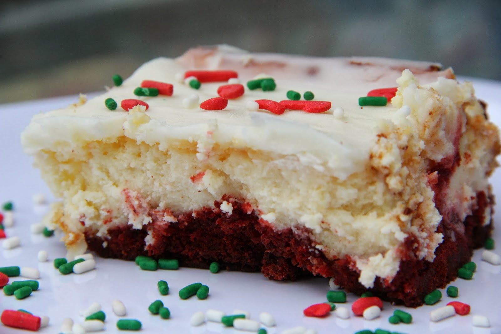 These bars have a cookie-like “crust”, a cheesecake center and frosting on top…joy to the world!