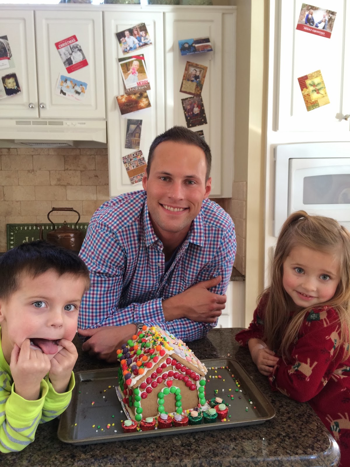 Day 357: On Christmas Eve Eve, we decorated our gingerbread house. These are my people :).