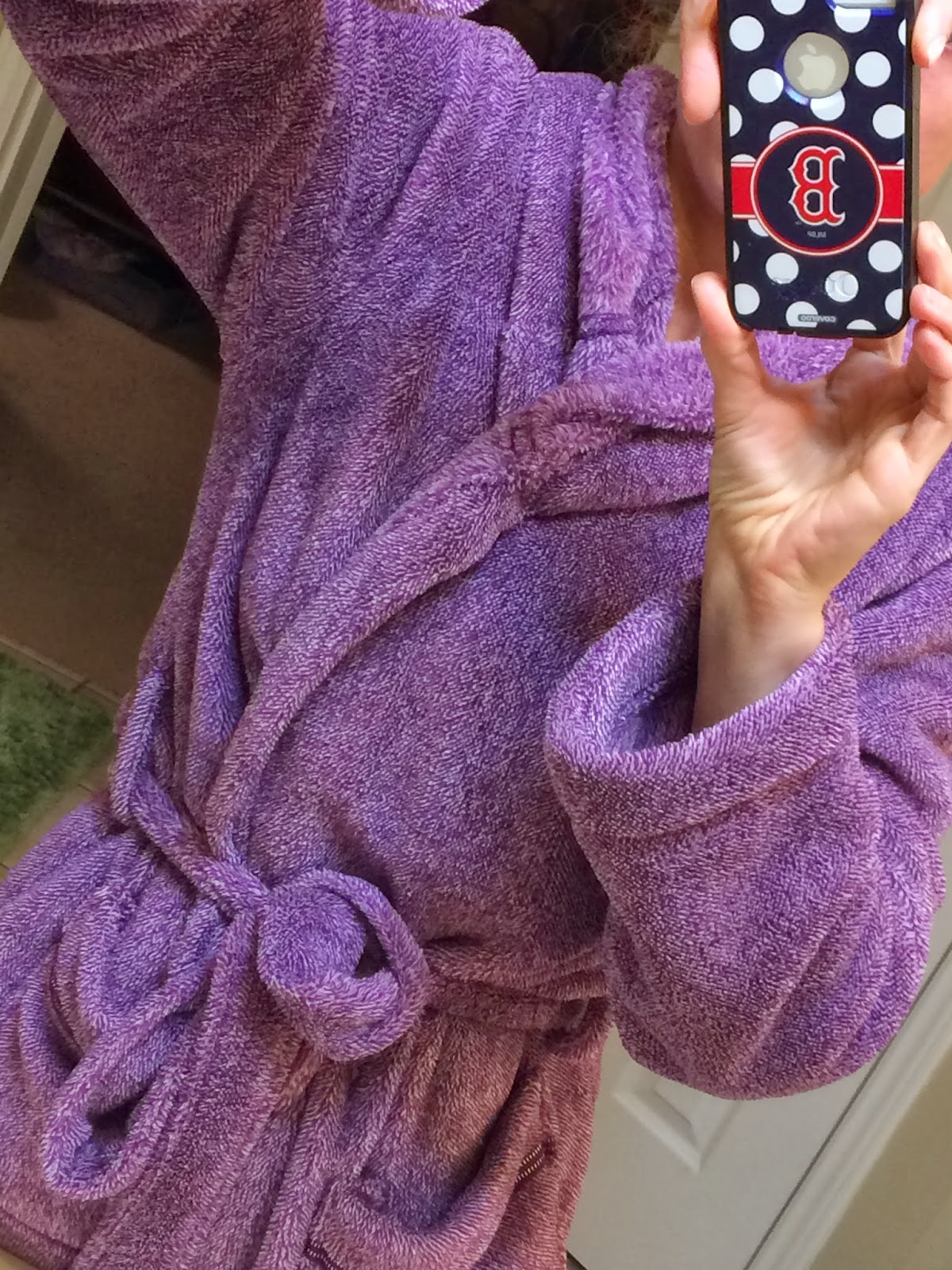 I took a shower and washed my hair. Andrew would bring home these Gatorade towels when he worked in Detroit and I found them to be perfect for wrapping up my wet hair.