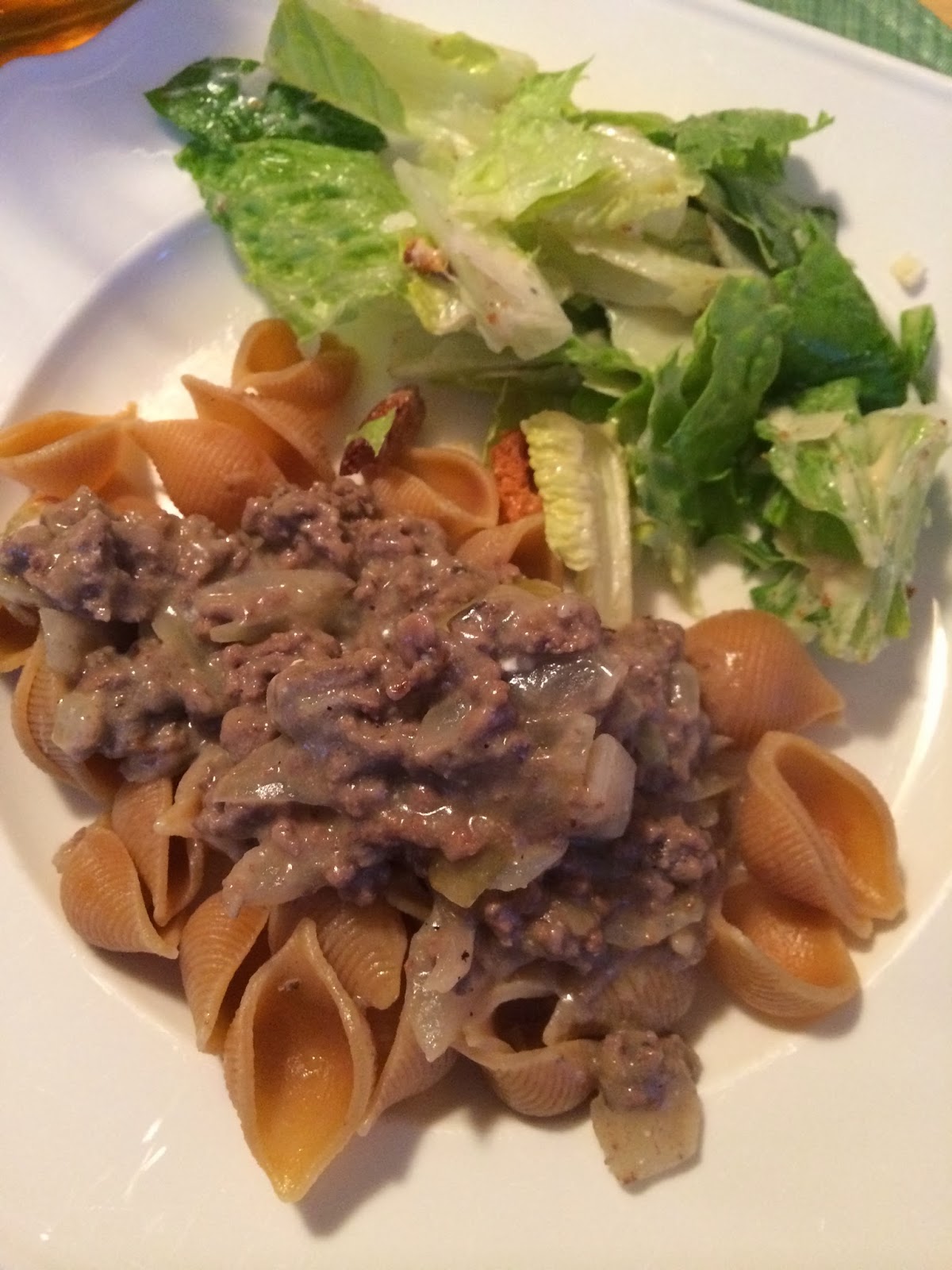 Hamburger Stroganoff was on the menu this night along with a Caesar salad.