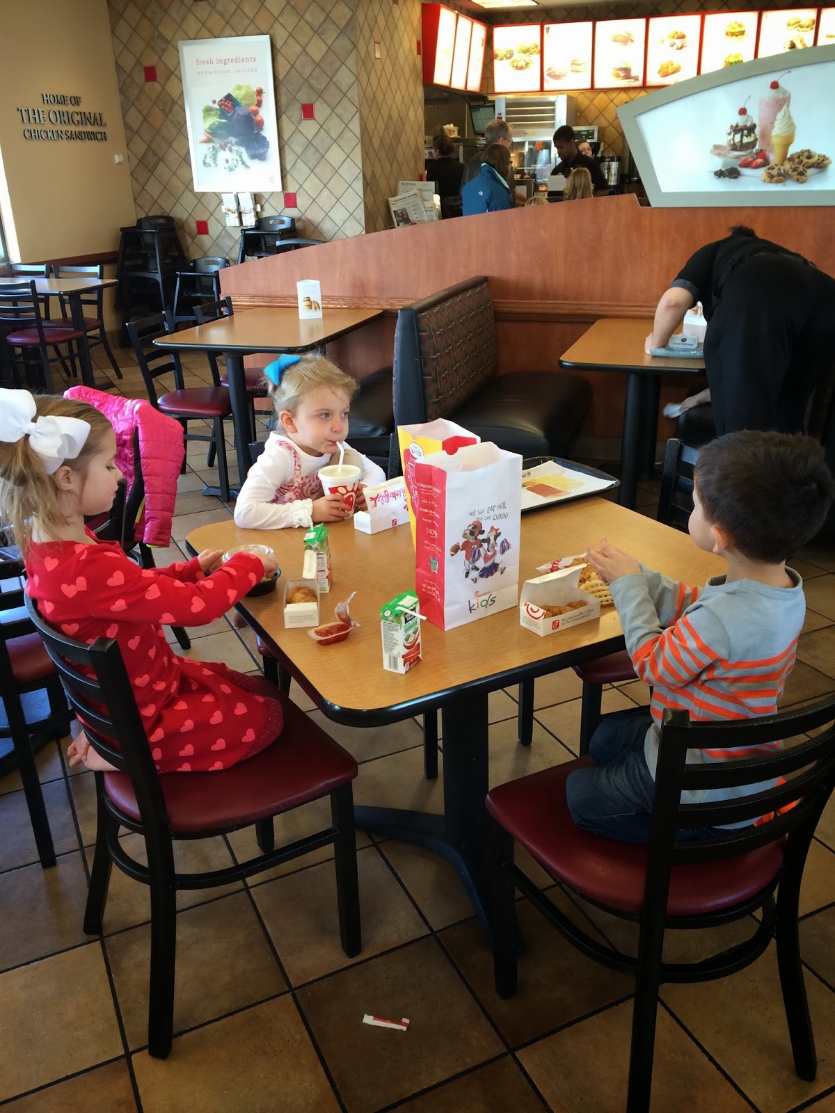 After the gym, Narci and I took our kids to Chick-fil-a…us mamas wanted some of their Chicken Tortilla Soup on this cold day! I also ate half a chicken and veggie wrap from my gym’s cafe (I grabbed one on my way out the door).