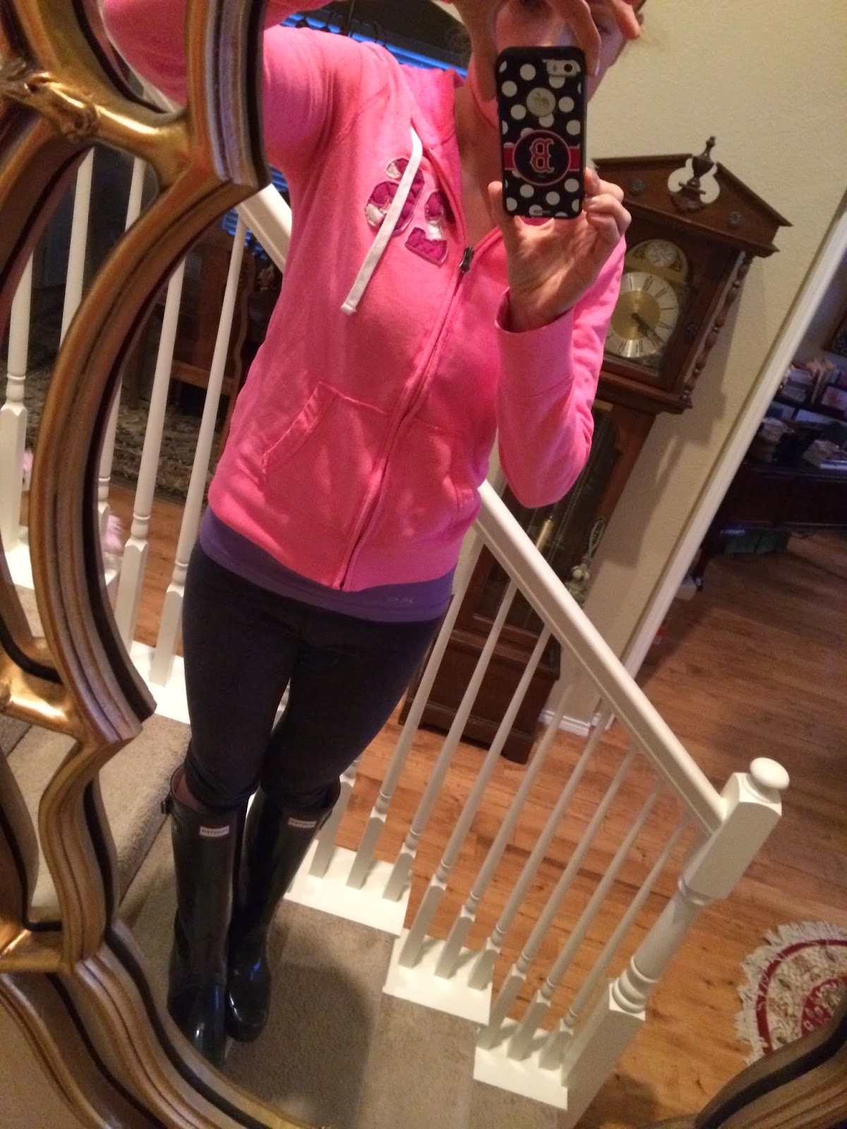 I’m dressed for the gym and wearing my Wellies (changed into my Nikes when I got there).
