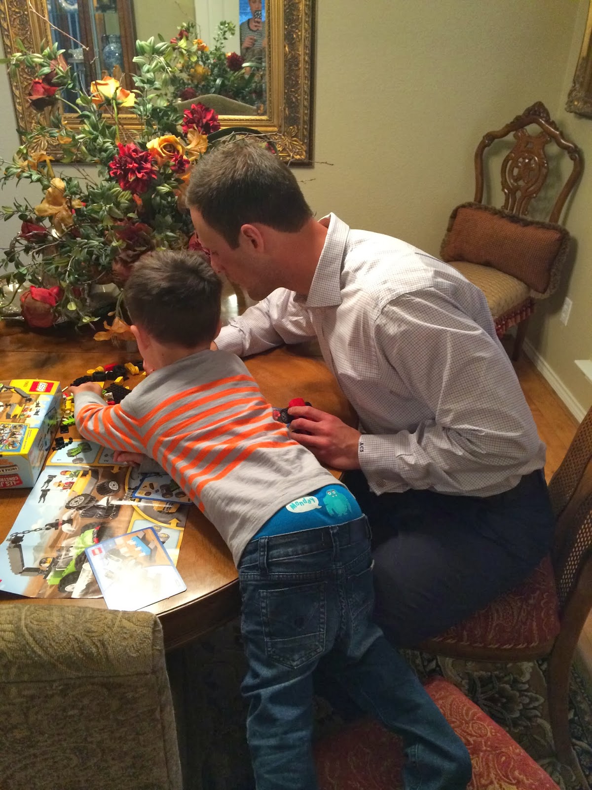 And while I made dinner, they played with Legos on the dining room table.